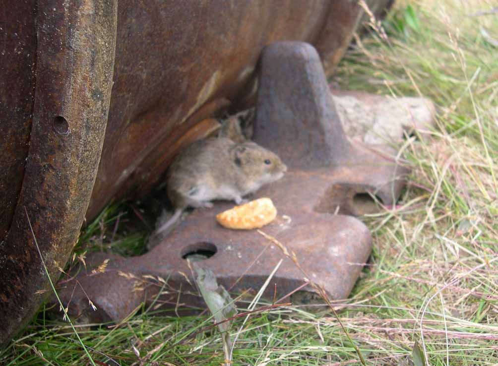 ...ну вот мы и на месте. У озера Большое Щучье, в месте, где из него вытекает одноименная река, стоит небольшой балок на санях - это все, что осталось от некогда существовавшего здесь обогревпункта. Следующие по своим делам вездеходчики всегда (круглогодично) могли найти здесь кров, пищу и возможность отдохнуть и помыться. Ныне, когда геологические пути в Арктику уже зарастают, от небольшого "посёлочка" осталась лишь банька, она же - жилой балок. Над печкой, на листе железа мы обнаруживаем весточку от Петера Майера.