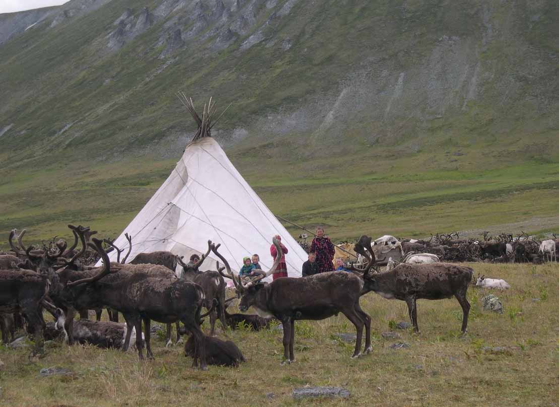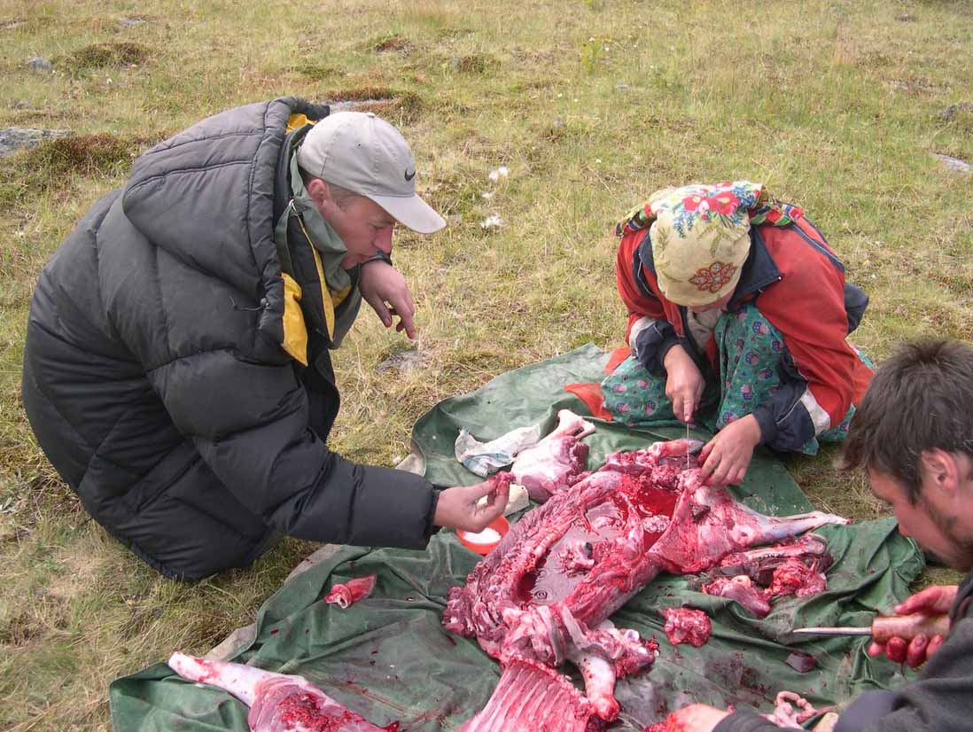 На серединный день в любом стойбище забивают жертвенного оленя и лучшие его части съедают сырыми.
