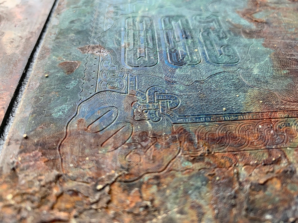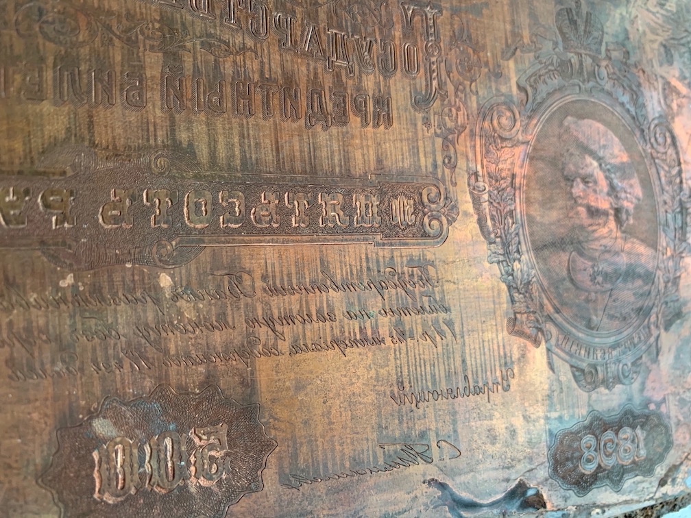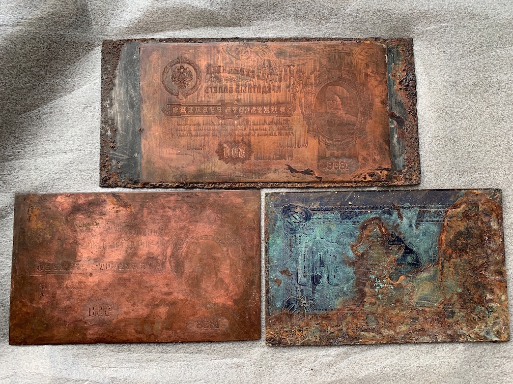 Лицевая качественная пластина вклеена в стальную пластину (видимо для процесса производства) с помощью эпоксидной смолы. Анализируя информацию в интернете удалось установить кем могли быть изготовлены эти клише. Имя мастера - Александр Пост-Петерсон. Не исключено, что это самый талантливый фальшивомонетчик России начала двадцатого века. Начинал свою деятельность с подделок трехрублёвых ассигнаций. Был пойман, осужден Лифляндским судом, сахалинская каторга, побег. Скитался по Сибири, подрабатывал слесарным ремеслом. В Иркутске, с двумя подельниками, приняли решение возобновить производство фальшивых купюр. Для этого перебрались в Кисловодск (где у одного из подельников была большая квартира) и приступили к производству 500 рублевых купюр. Дело поставили на широкую ногу. Основную массу купюр везли в Сибирь, что бы отвести от места производства. В последствии у Поста появляется московский сообщник и фальшивомонетчик перебирается в Москву. Через этого засыпавшегося сообщника Пост попадает в тюрьму с максимальным сроком наказания. Дальнейшая его судьба не известна. Вложенные эскизы изображений |