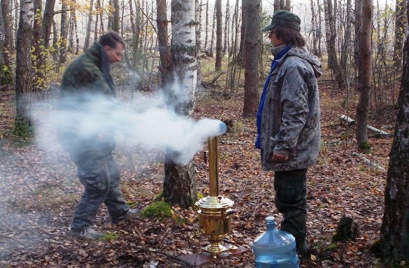 за тихое и спокойное место. Находки очень порадовали(жаль, что сам не копал), Новое и креативное решение от Володи Оза - самовар!! Зачет! Очень понравилось. Шашлык был правильно и аккуратно порезан и замаринован отлично. Респект! А ведь говорят:"Шашлык женских рук не терпит." Вранье. Сделать плов традицией слетов- да легко! Идея родилась случайно, когда нас занесло после копа, на слет Саксаулов, уважаемых людей. Я заметил, что они не питаются шашлыком- а готовят горячие блюда в нескольких казанах - шурпу, плов. Т.е. правильно относятся к питанию. А у нас на слетах все больше детей и подростков появляется, весной и осенью погоды не теплые, кормить только шашлыком и холодными овощами... Вообще, надо сказать, организаторы быстро учатся. В этот раз горячие плов и шашлык были сделаны максимально быстро, учитывая предидущий слет. Поэтому, кто с утра решил отметить встречу, из закусок имея только дым от костра, были достаточно оперативно накормлены. Поэтому теперь, в отличие от весеннего слета, жертв и разрушений не было! Был рад всех увидеть и пообщаться! P.S. Пишут, с юмором, что было скучно. На прошлом слете после роли повара, пришлось примерить роли рефери и пом.фельшера. Не понравилось! Опять же, респект организаторам, на фильтр по новичкам. Ну и последнее - Костяну купить глобус Моск. области, т.к. по его атласу лучше летать на истребителе. Сообщение отредактировано sergey-serzh: Oct 25 2016, 10:25 -------------------- Мне нравится разведка новых мест.