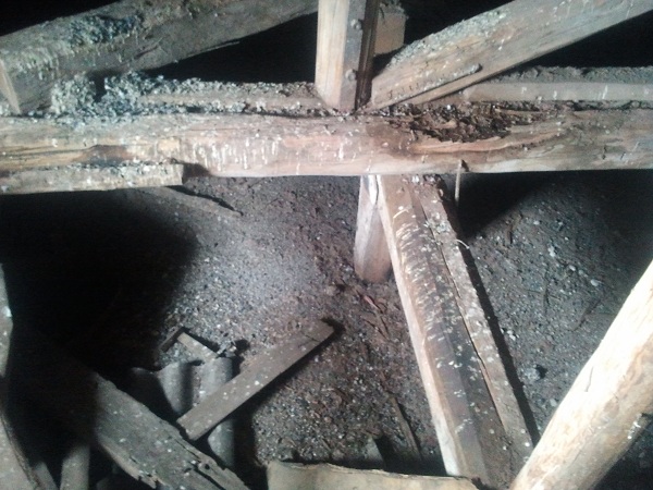 Сегодня были на чердаке одной из Морозовских фабрик. По всему чердаку расположены деревянные мостки, внизу на полу присыпка.