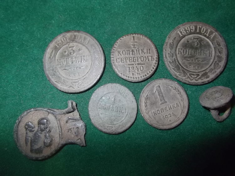 Сегодня вечером заехал ко мне камрад, поехали, говорит, пару часов перед сном покатаемся.Поехали, кругом травища, глаз не радует.И тут вспоминаю я про один огородик непонятный, маленький-5 на 10м., толи заброшенный, толи чейто.Кто-то его иногда вскапывает, но ничего не сажает.Года 2 назад, когда он был вскопан я на нем двунделей медных Российских насобирал , и даже иранская монета 19в. попалась.В общем свернули и не зря!Добрый человек огород вспахал и ничего не посадил.Вот мой результат. Мля, от пропеллеров элементов 10 накопилось, целый никак не дается, МЕЧТА! Вложенные эскизы изображений |