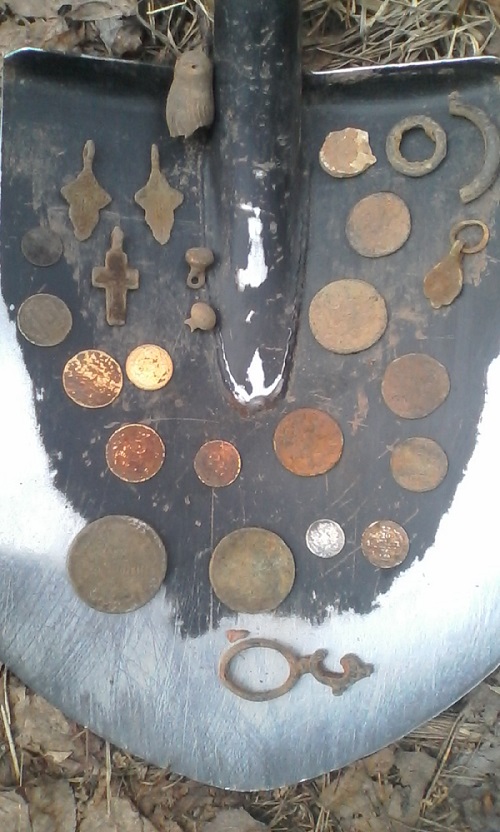ездил с утра покапал час ветер сильный.Поднял деньгу 1853 и конины накопал.