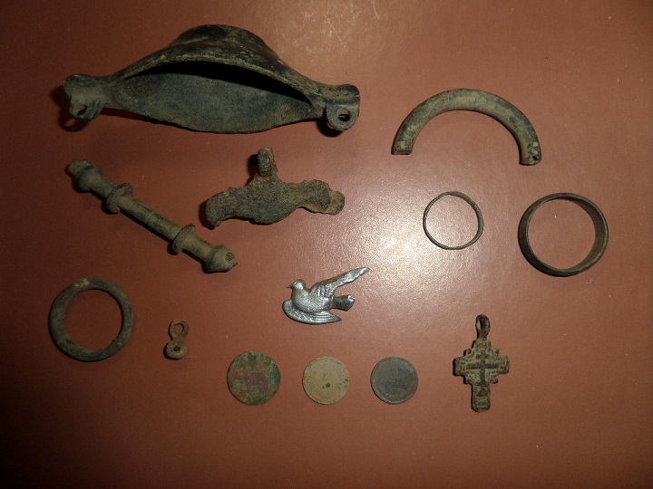 QUOTE(моховой @ Jul 9 2015, 21:15) Выходные провёл на Оке в Белоомуте. Поймал пару лещей и мелочи на уху.Сегодня немного покопал в Павлово-Посадском районе.Потихоньку начали кое-где косить траву и убирать сено.При мне убирали сено,ходил по кошенному.Разрешили ходить только чтобы ямы закапывал.Кстати кто знает,что за загогулина с двумя ушами ,случайно не от коня?Порадовала копейка 1935 г. и крестик(такой ещё не находил). да, конина. Голубок кстати с фестиваля молодежи. |