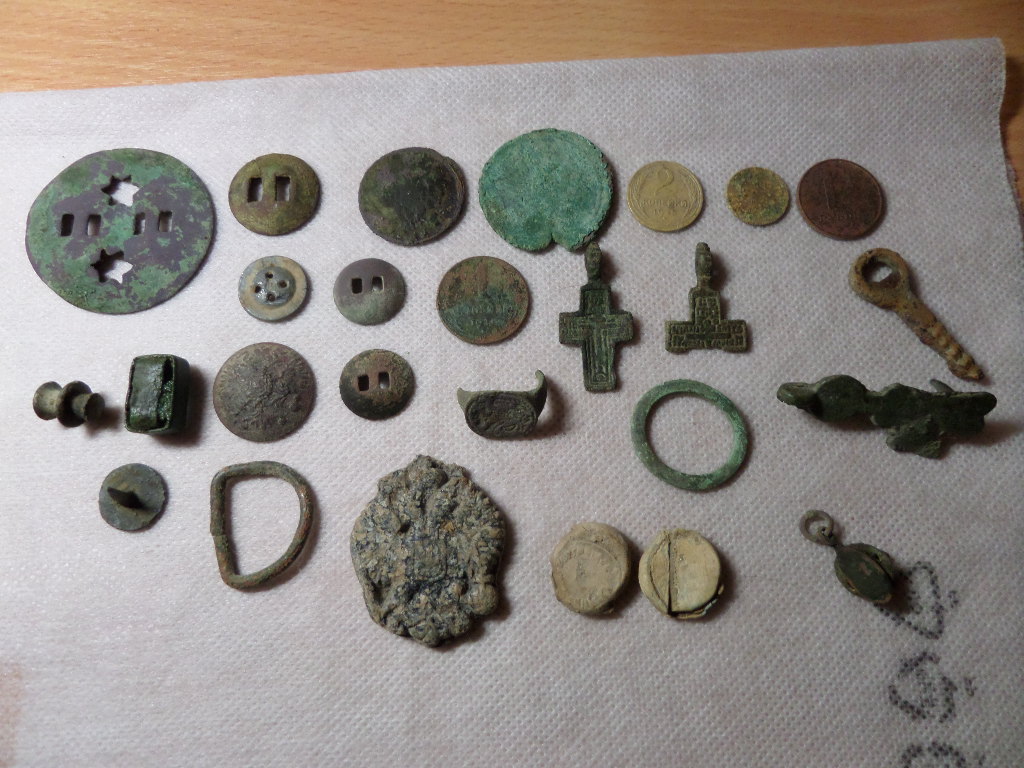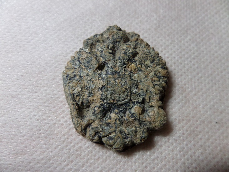 Покопал сегодня километров за 50 от города.По находкам грустно,ничего путного.Всё таки бедноват наш район,монеты ушибленные удобрениями.Был в двух местах, убранные поля.На одном поле прошёл в одну сторону с километр и обратно столько же,а вылезла всего одна монета, хотя две деревни рядом и ямок нет ни одной.Наверно всё же народ бедно жил.Подскажите по гербу, кое-где проглядывается позолота ,тяжёлый не понятно из какого металла,обратка гладкая.