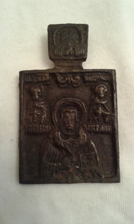 Привеска листовидная, 17-18вв. "Святой воин, Голгофский крест". Ценность больше духовная . Встречается не редко.