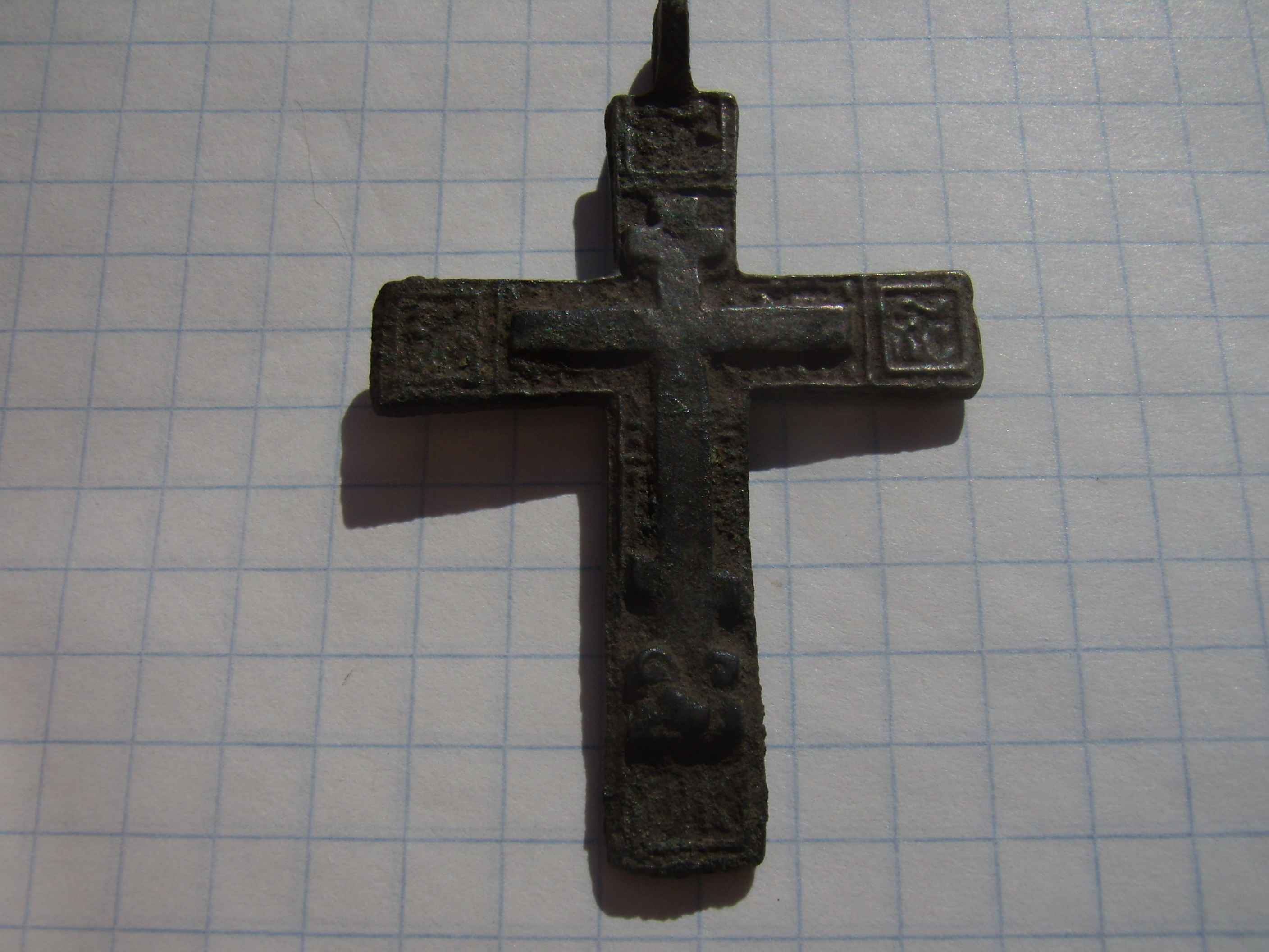 Коп сегодня получился скоротечным. Жарко на пашне да и место попалось так себе. Монет мало и ничего интересного. Вот крестик первый раз такой нарисовался. Белый металл. Так называемая оловянистая бронза.Хотя до сих пор не пойму что это за сплав.Олово с очень небольшой добавкой меди? P/S. Игорю спасибо за помощь в информации.