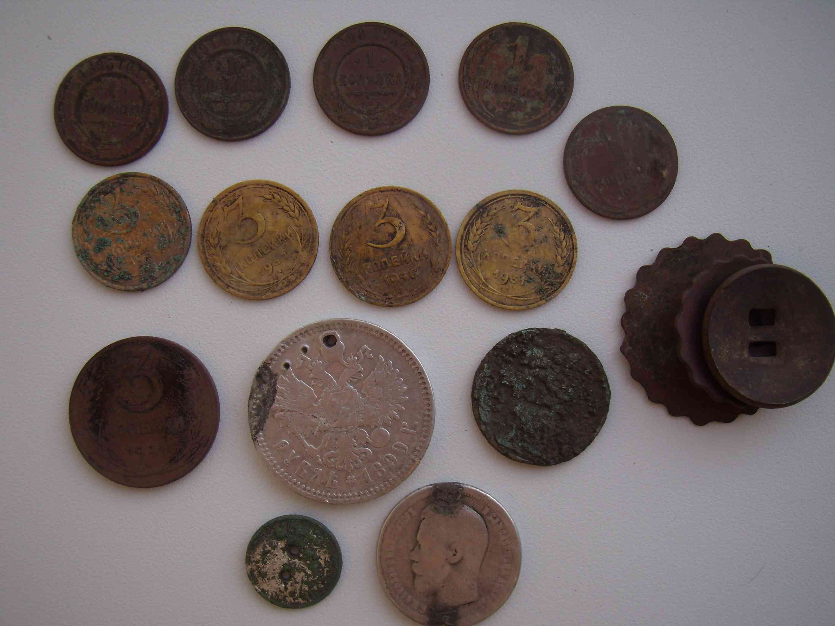 QUOTE(СССерый @ Jul 12 2013, 21:28) А под рублем что за монета? (сер) десять копеек с двумя дырками.( разновид народной пуговицы? )и полтинник.На полтиннике видны следы от припаяных ушек. Там наверно монисто по полю плугом растаскало |