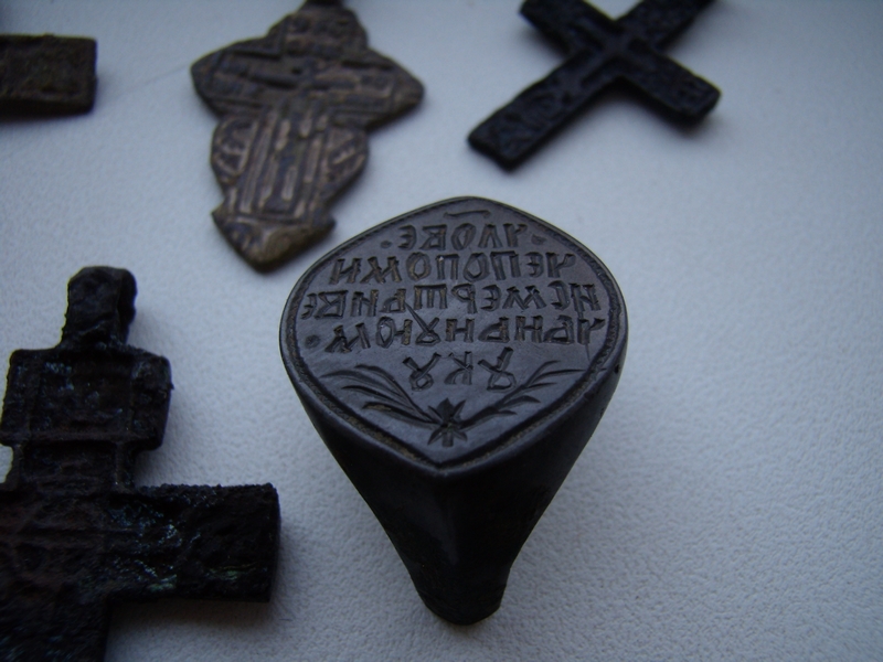 QUOTE(timanas @ May 17 2014, 13:25) Находки с места сгоревшей в конце 18 века деревни. Не копаная. Но искать уже тяжело-трава густая. Порадовало навершие перстня-печати. Ужасть какая - "Человече попомни смерть и вечную муку" -------------------- Dixi.