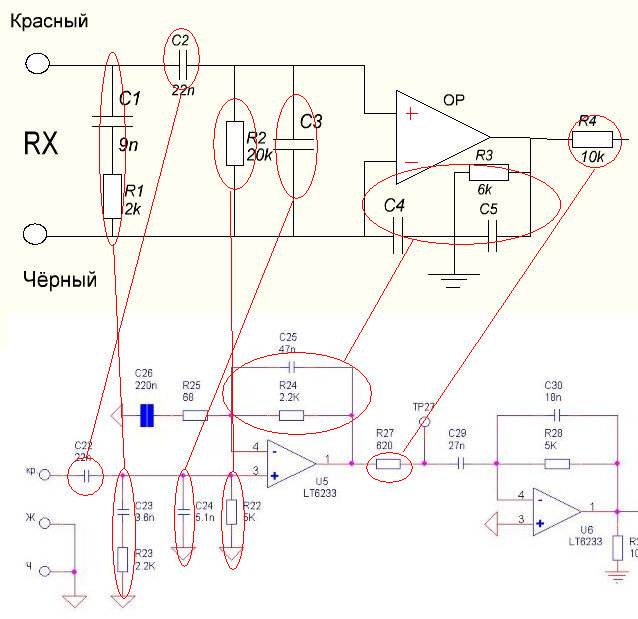 QUOTE(dmitryru @ Mar 3 2012, 10:20) Да мне кажется что этот резистор 2,4 мОм - слишком сильно подымает амплиту в Rx, вот и хочу попробовать немного увиличить его. Думаю они поставили какой был под рукой, возможно катушка будет лучше работать с резистором 5мОм. Дмитрий, я уже где то писал... дело не в изменении амплитуды. Посмотри сигнал на выходах СД (синхро детекторов): в идеале там должен быть "0" по обоим каналам (обычно в ноль сводят канал Х, а амплитуду в Y сводят в ноль этим резистором, в послед с конденсатором). Значение этого резистора должно быть таким, какое есть. -------------------- 2001---->D1+EQ800+D2 WS6