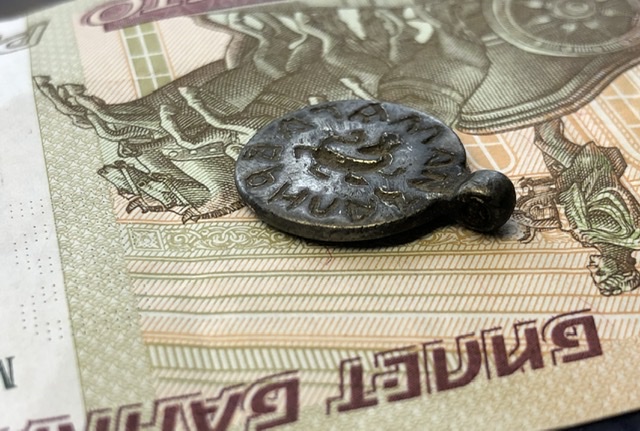 Шейная печать «Лютый зверь». Серебро. Видны остатки позолоты. В ушке остатки ремешка. «Читается "ЗИАМѦ ГАВРНЛА". Т.е. "Знамя Гаврилы".