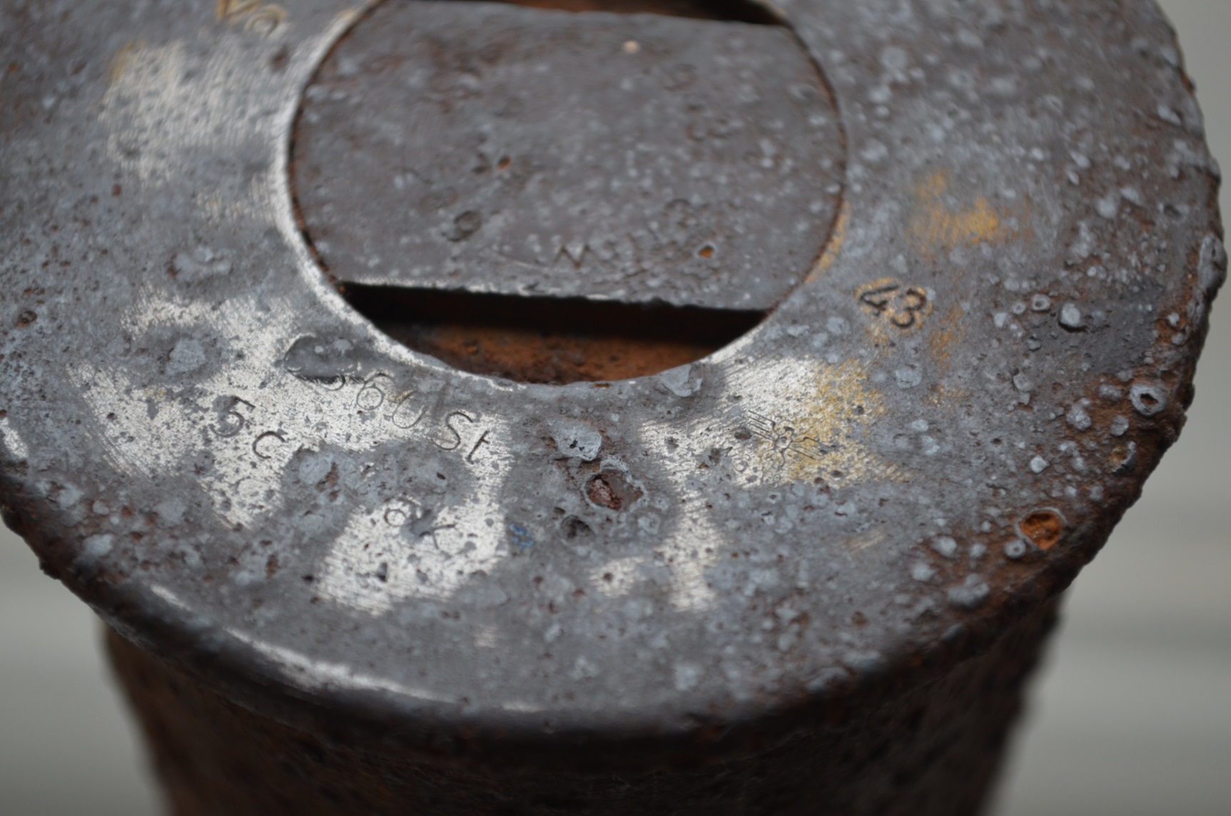 Всем доброго времени суток! Попалась такая вот гильза. Стальная. Состояние очень крепкое. Есть клейма. "Курица" тоже присутствует. Общая длина - 42 см, диаметр нижний - 7,8 см, диаметр верхний - 5,5 см. Собственно стоит ли чего? Заранее благодарю за ответы!