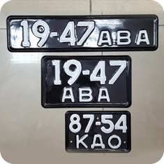 ![]() Ниже два более интересных номера из Луганской Народной Республики. Оба сделаны на основе пластин, в свое время изготовленными для транспорта одного из боевых отрядов, действовавших в 2014 г. на этой территории, а именно отрядом "Русь" из г. Антрацит. Такой номер в нормальном состоянии у меня был. После разоружения таких повстанческих подразделений и перехода их в состав сил ЛНР, пластины номерных знаков "Руси" были переделаны. На закрашенную черным поверхность старого номера через трафарет краской было нанесено новое обозначение - "5015" и отдельно стоящий код "50". Что означали эти коды, непонятно. Однако такие номера существовали, видимо, очень недолго. Впоследствии знаки видоизменились - были изготовлены из ламината, а символы нанесены шрифтом, сходным с советскими номерами обр. 1977 г. Такой знак сейчас тоже появился. Что означает теперь уже код "04" в своеобразном поле для кода региона, мне выяснить не удалось. Эти коды были разными. Вернемся к первому номеру из пары. Почему так странно расположен текст, перемежаясь фрагментами номера отряда "Русь"? Дело в том, что и этот номер (5015 - 50) был затем заклеен. Что было нанесено поверх? Не знаю, может как раз это был второй номер из пары с кодом 04, тем более что на 04 с изнанки нарисован "5015 50", нанесенный описыванным выше способом. Почему-то на первом номере эту обклейку кто-то оторвал, а при удалении она сошла, захватив часть старых пленок и обнажив частично предыдущие слои. Вообще, номера как раз интересны своими перипетиями - за короткое время на одной заготовке было изготовлено три вида номеров, что очень хорошо отражает нелегкое время, которое и сейчас продолжается на этой территории бывшего СССР. Совершенно не хотел бы скатываться к политической стороне вопроса и прошу не комментировать происходящее именно с точки зрения политики. А вот узнать об аналогах таких номеров, в какой именно временной промежуток они существовали, было бы интересно. По моему мнению, указанные номера следует относить к военно-правительственным, ведь обычным гражданам их не выдавали. Но точно делать выводы будет можно только после накопления информации. А с ней-то полный швах. Следующая генерация таких знаков в коллекции также представлена - черные номера с флагом ДНР слева и группой обозначений из двух букв серии (означавших орган управления, например ВК - военная комендатура) и четырех цифр. Потом появились современные номера ЛНР на алюминиевых пластинах, среди которых были предусмотрены и номера для правительства. Правда я не знаю, выдаются ли они. Кажется, нет. В то же время появляются интересные номера - обычного образца, но с буквами серии л-нр. Вероятно они теперь и выполняют роль правительственных. Информации из тех мест не очень много. Еще один номер - мотознак обр. 1977 г. серии НАБ. С ним все понятно, это Наманганская обл. Найден был далековато от места своей выдачи - в Пензенской обл. Основы "НА" у меня прежде не было. Будем искать белого частника, но пока хоть и мотономер подойдет. И последний на сегодня номер - исландский образца 1937 г. (при том, что формально Исландия стала независимой от Дании в 1944 г.). Транспорта в стране немного, поэтому обычно номера состоят из цифр числом до пяти, а буква означала региональную привязку к городу. Сначала номера выполнялись рисованными, затем, по мере развития технологий, перешли 