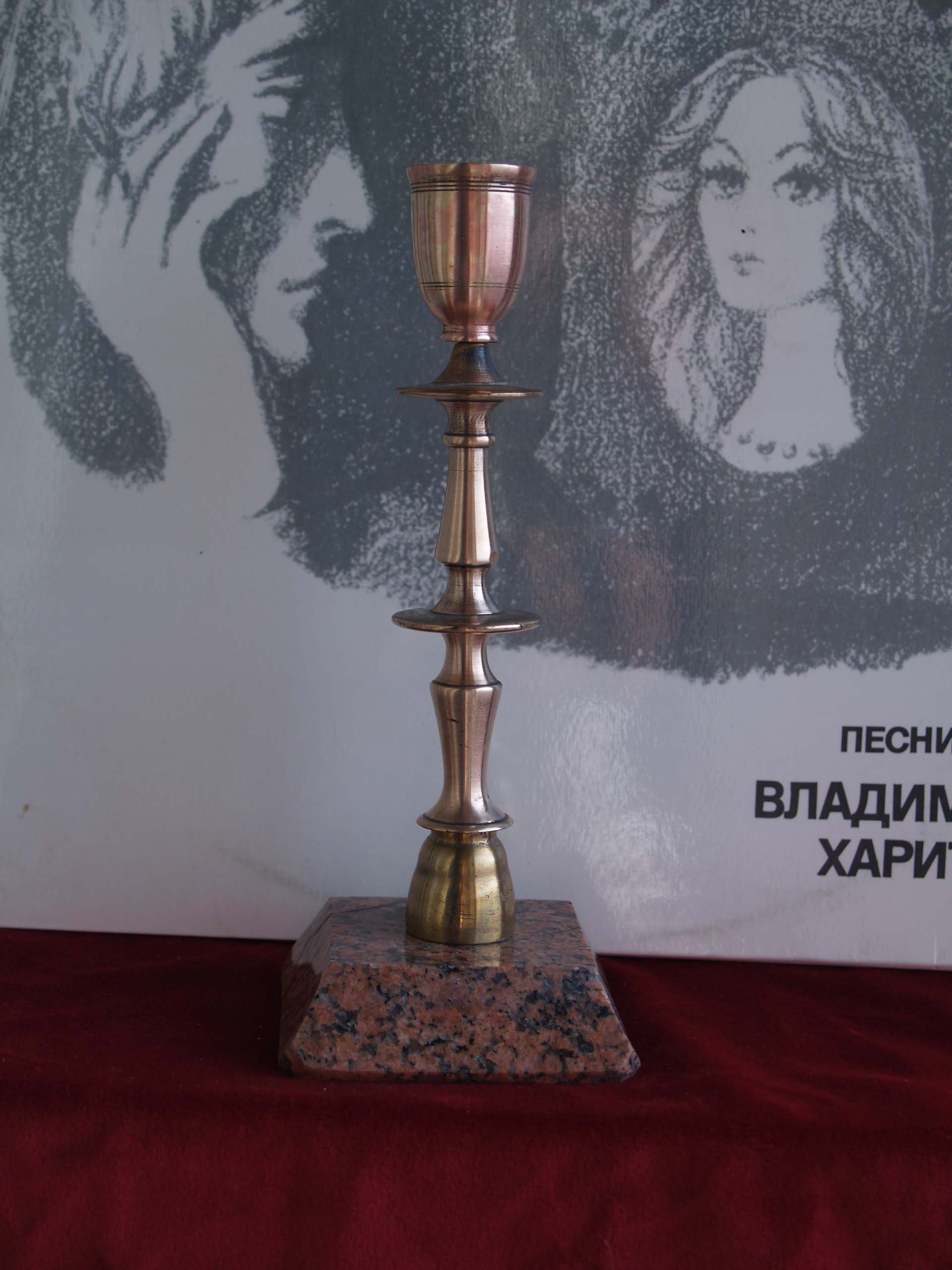 Разрешите и мне показать свои поделки.Детали подсвечников решил немного обновить.Я художник по камню давно на пенсии,захотел сделать подарок товарищу,тем более он любитель походить с металиком,нашел в хабаре несколько подходящих деталей подсвечников.Вырезал ножку и подставку из лабрадора,палернул. Получился подарок.С тех пор ,найду или друзья подарят одеваю в гранит и мрамор старье.Смотрите что получается.Это часть моих поделок.