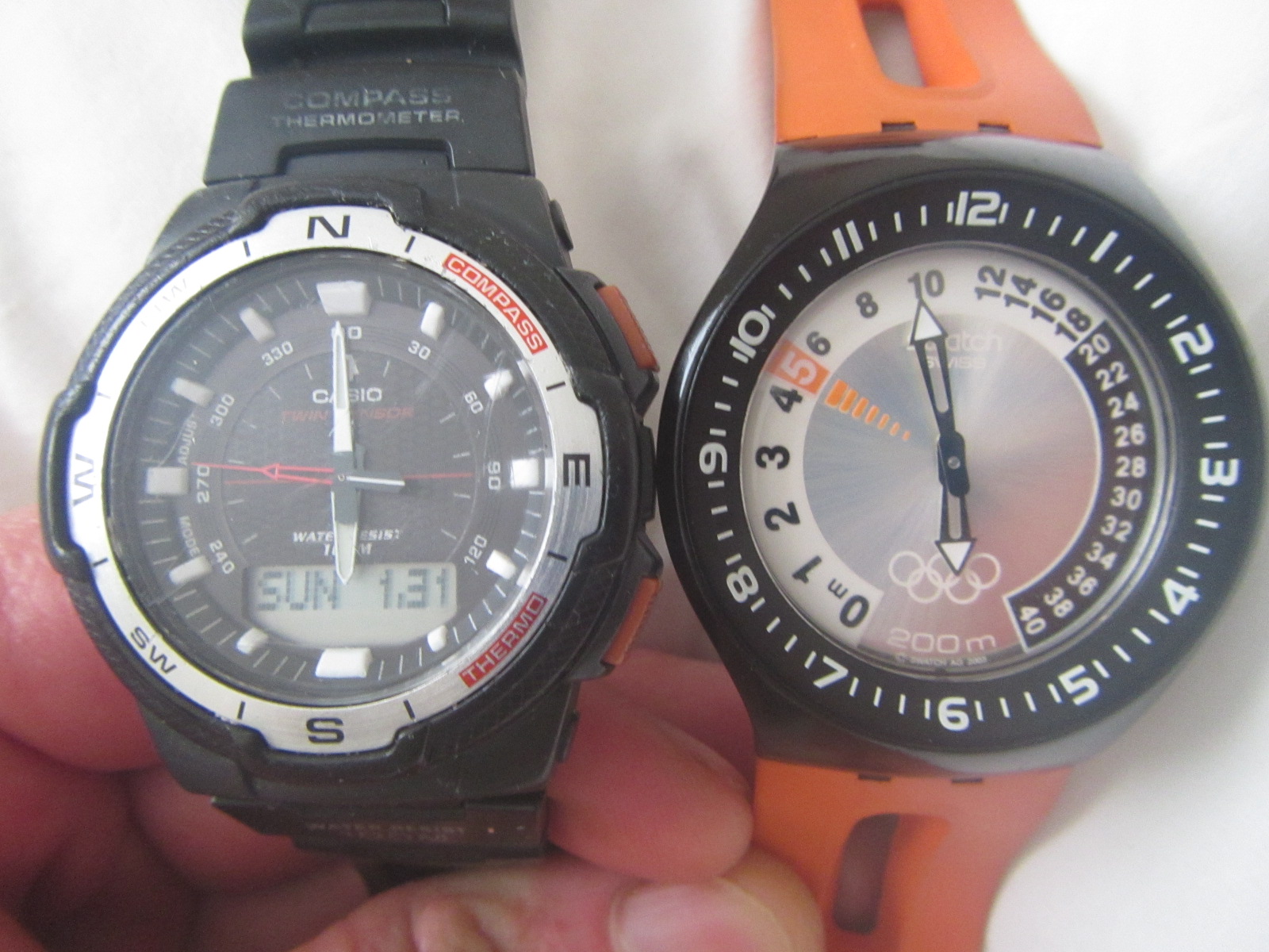 QUOTE(pripa @ Aug 18 2020, 22:03) Я с касио за 8 $ годами хожу, на детектор изолентой их приматываю чтоб время знать, и чаще их теряю чем они из строя выходят, одна в них проблема, это когда на зимнее или летнее время нужно переходить, то кнопки закисают от солёной воды, и с трудом нажимаются На Касио слева та же самая проблема.. более того, там нельзя вручную подкрутить стрелки. Две левые кнопки залипли, поэтому при перелетах ибаторий с выставлением времени по часовому поясу абстрактного города на твоей долготе. Часы справа предназначены для любопытных дайверов, кому интересно знать, на какой они собстно глубине. Технически сделано в Швейцарии, а там сами знаете. Часы прикольные, но показывают или время, или глубину. Сообщение отредактировано handyman: Aug 19 2020, 20:03 Вложенные эскизы изображений -------------------- Кто рано встает, тот все заберет!