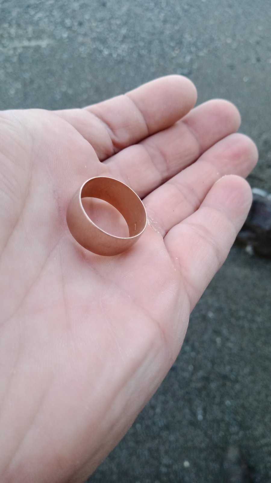 Как то было колечко обручальное на 7 грамм страшное до ужаса как будто термитами поеденное из за не однородности сплава все мелкими ямками как выбоины но пробу держало 585