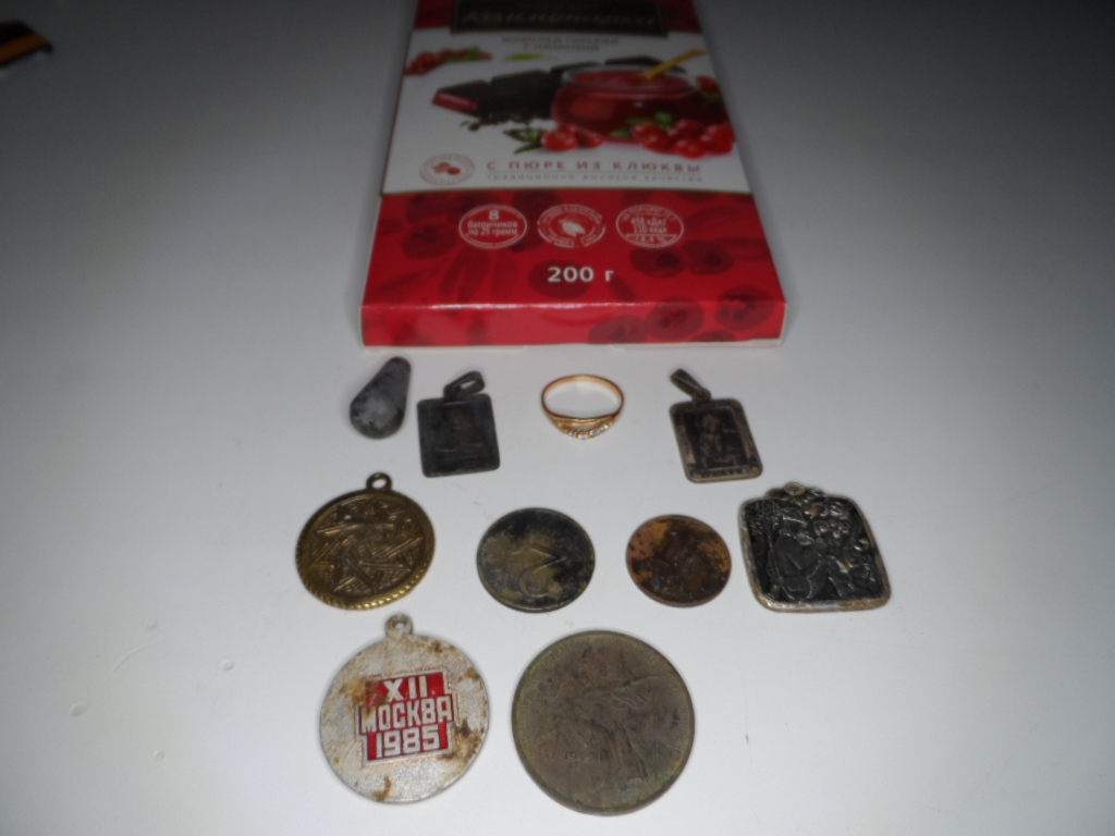 Не блеснуло , но зато как впечатлениями отсветило Место выбрал правильно, почти сразу выкопал пакет от молока из СССР, я даже забыл, что раньше три цены на нем указывалось, вспомнил когда увидел: ![]() ![]() В скуп залетело одним копком сразу 6 монет СССР, вторым копком - еще 4. Вначале думал , что кошелек утопили, но скорее всего просто кто-то в семи метрах от берега где ниже чем по пояс, просто высыпал в воду горсть мелочи - в радиусе 40-50 сантиметров от первого копка я выкопал 54 монеты ССР, из которых был одна болгарская стотинка 1974 года. итоги: ![]() ![]() часы наручные, циферблат от секундомера, за кадром конденсатор где-то 10 см длиной и 3см шириной + плата с резисторами транзисторами от какого-то старого девайса, капот от машинки + целый патрон под ТТ,разломанные очки две пары - по разнообразию конечно зашкалило. клинок длиной 330мм, лезвие - сталь - ни на йоту не проржавело, на оконцовке клинка - паук в стекле в стиле тюремных рукоделий ![]() кусок простреленного железа квадратный - вообще непонятно зачем стрелять в такой маленький кусочек ![]() И вот еще загадка: ![]() у меня странное подозрение, что одна из монет 2 копейки сделана не из меди - у нее цвет совсем другой, может кто подскажет что по этому поводу Сообщение отредактировано Slava_dnepr: Jun 1 2020, 16:34 |
