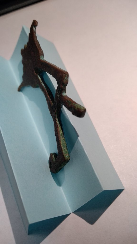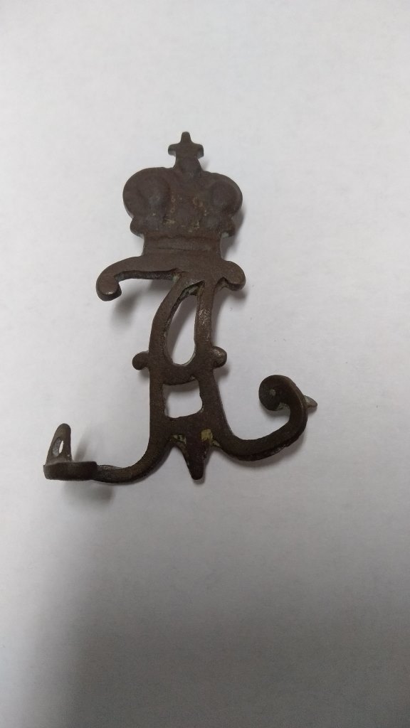 QUOTE(aksenov- @ Jan 20 2020, 09:22) Здравствуйте. Благодарю за высказанные всеми участниками мнения. Размеры : целый 61 мм высота , 42мм ширина (приблизительно) толщина 2,5 мм. Обломан : 59 мм высота, ширина 49 мм (приблизительно) толщина 2,5 мм. Выкладываю фото обломанного, постарался сделать чётче место слома. Если это не вензель А- 1 то что ??? -)) С уважением ко всем участникам. При внимательном рассмотрении лично у меня складывается впечатление,что вертикальная ,,палочка,, так и должна располагаться под углом к перекладине литеры А. Т.е. это не римская цифра 1, а нечто другое. Возможно, имитация утолщения левой ножки самой литеры, или продолжение монограммы. Посему, возможно, это владельческая монограмма. По способу крепления могла находиться на конской сбруе,охотничьей амуниции, заказном оружии и прочих личных вещах. -------------------- Так уж бывает, так происходит...
