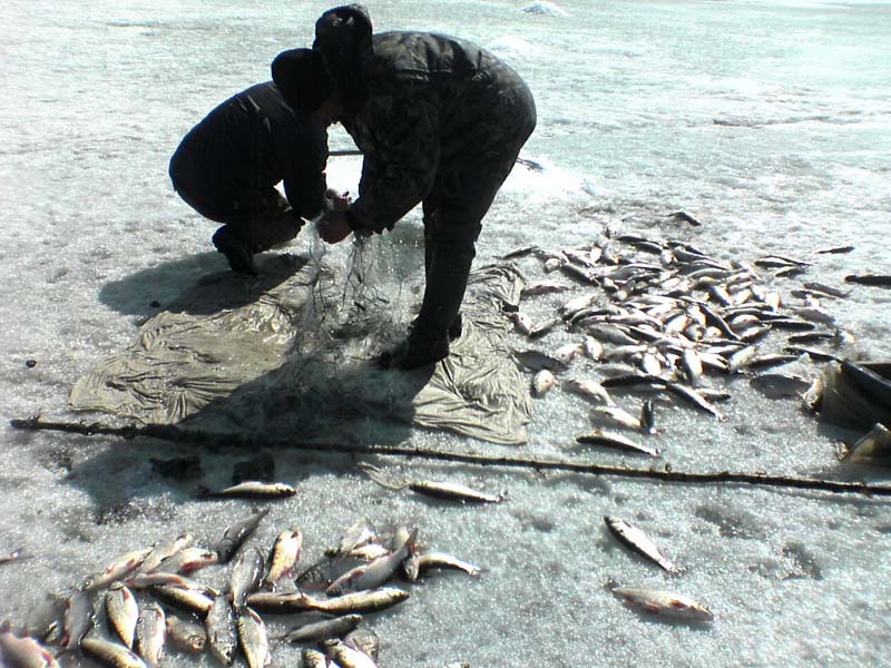 Сетки, что зимой, что летом - вещь спорная. Сам ни разу на сети не рыбачил, да и не тянет. Можно ведь и по другому, более правильному что ли рыбу поймать, если захотеть. Вопрос ловли на сети, он всегда будет будоражить умы простых рыболовов. Разные люди ловят на сети и ловят-то по разному. Одно дело человек, который не хапает и регулярно проверяет сети, берёт только на еду (некоторые тем и живут); а другое дело пьяное быдло, которое сетями реку поперёк перегораживает, всю ночь водку пьянствует, да при этом ещё и сети забывают, теряют, бросают. Сам подводный охотник и скажу вам точно -это очень хреновый вид, когда встречаешь под водой старую сетку, забитую гниющей, полуразложившейся рыбой. И "люди", которые так относятся к природе, как правило, это далёкие от природы люди (читай властьимущие).