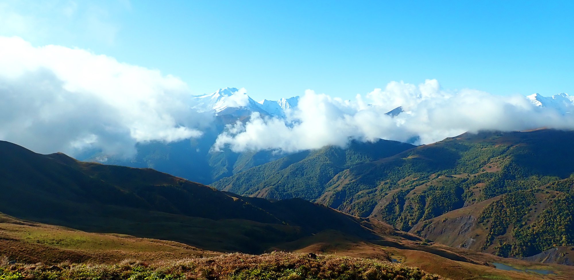 QUOTE(новый_ник @ Feb 25 2020, 20:58) через некоторое время облака оказались ниже меня, но дождик всё равно не прекращался, в некоторых местах приходилось идти пешком, потому что велосипед просто пробуксовывал на подъёмах в грязи, да и я стал уставать.. Пиши еще. Интересно. Обувь у тебя какая, обычные кроссовки?близилась ночь и я понимал что до темна не успеваю в Шарой, долгая беседа в с. Тазбичи давала свои плоды, естественно плюс тяжёлая дорога.. туман, видимость на расстоянии 10-20 метров, но собакам это не помеха, меня учуяла одна и начала гавкать, ей начали отзываться другие, с окрестных пастбищ, вскоре они собрались вокруг меня и начали преследовать как волки лося, штук 20 от небольших, до размером с мой велосипед..) к счастью, как я выяснил, они оказались всё же трусоваты, не нападали, но и долго не отставали, пока не начался небольшой спуск, на котором я подкрутил педали и собаки остались где-то позади.. мои мысли были о здании поста ГАИ, которое должно быть недалеко впереди и могло быть открытым, я мечтал спрятаться от дождя, переодется в сухую одежду и забраться в спальник, но тут на дорогу вышел он, мой спаситель, Мавлид, чабан из Дагестана, он пригласил меня в свой вагончик и сказал что пост ГАИ закрыт на замок и внутрь не попасть, я с радостью согласился.. -------------------- Да уж...