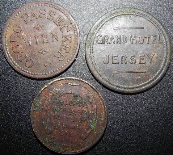 Нижний, понятно, Новогодний, только год не ясен. https://en.numista.com/catalogue/index.php?...ahr%22&e=tokens А верхние? Казино при отеле/ресторане или что? Надписи: Georg Passecker Wien 20 Grand Hotel Jersey 3-d Du sollst mich hegen und pflegen ich dringe dir gluck und segen Prosit Neujahr (ты будешь беречь меня и заботиться обо мне, удаче и благословениях) Диаметры, соотвесснно 24, 27 и 23 мм. Вложенные эскизы изображений -------------------- Музыка проверенная временем _http://merkurs.klausies.eu