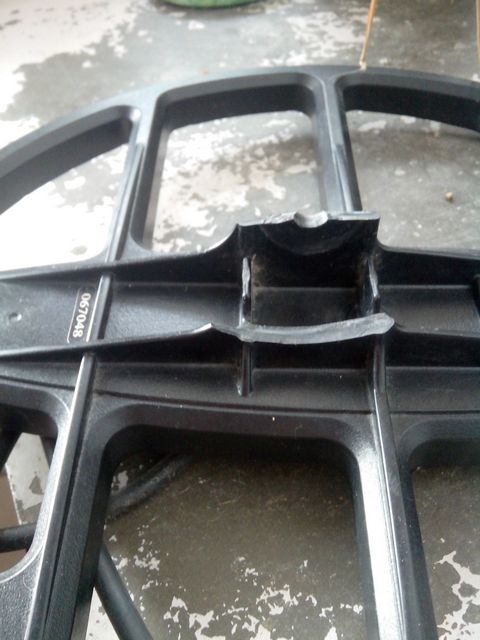 У меня была такая же проблема,только на катушке ака.Естественно посидел в инете,но и получилось я думаю не плохо.Я делал так: Купил дихлорэтан,взял листовой пластик/растворяющийся в купленом химикате/. Немного пластика превратил в мелкую стружку, с помощью крупного напильника.Расстворил стружку в дихлорэтане/половина пузырька/.Чистым дихлорэтаном намазал места слома.Немного подождал намазал данные места расствором со стружкой/она должна быть расствореной/.Прижал склеиваемые детали.Дав подсохнуть промазал трещины по бокам обильно темже расствором.Потом сделал выкройку из картона приклеиных ушей.По выкройке вырезал из пластика заготовки усилений для ушей.Подогнал для склейки. Чистым химикатом обильно намазал места склейки на усилении и на приклеенных ушах катушки.Потом намазал также обильно эти места расствором и с усилием прижать.Места склейки лучше зафиксировать. Ну и получилось вот такое.