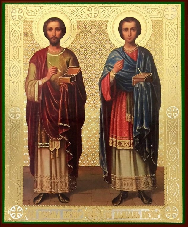 Мне видится, что это Святые бессребренники и чудотворцы Косма и Дамиан.