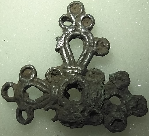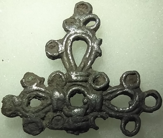 Похоже была крестовидная прорезная подвеска из оловянистой бронзы ХII-ХIII вв.