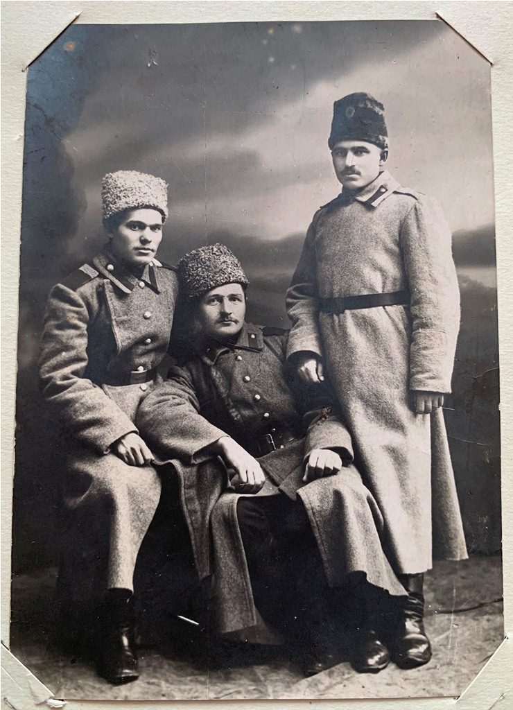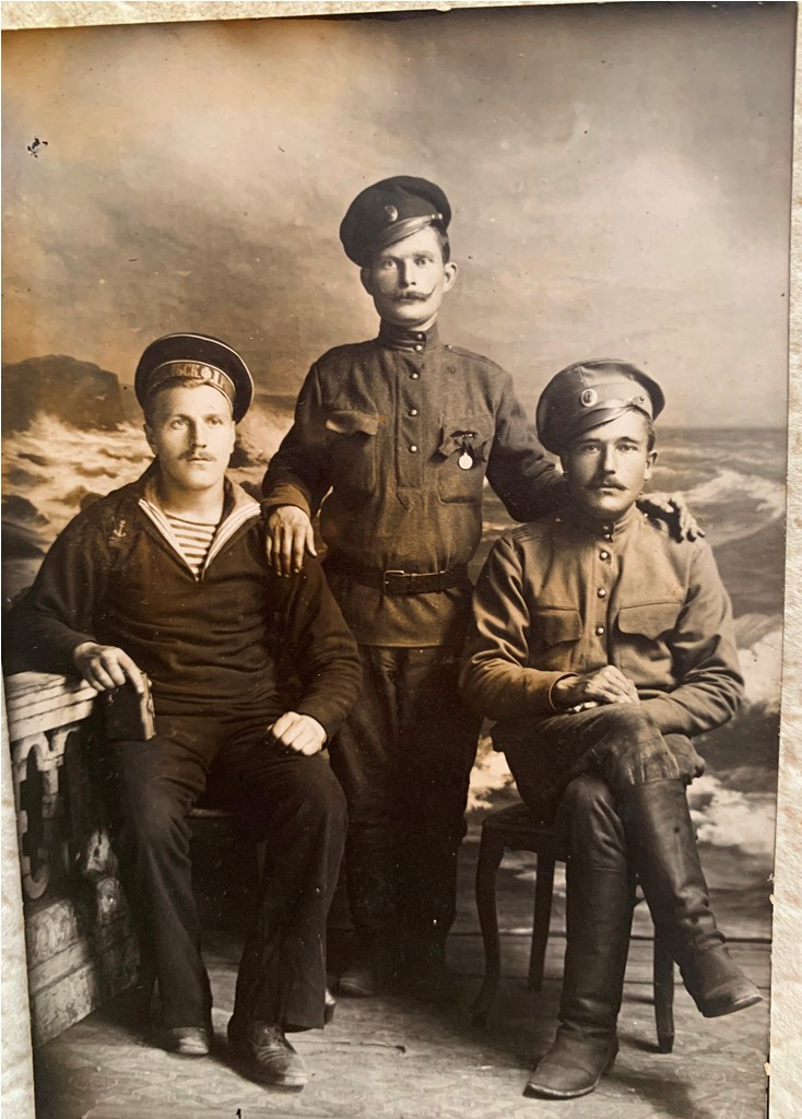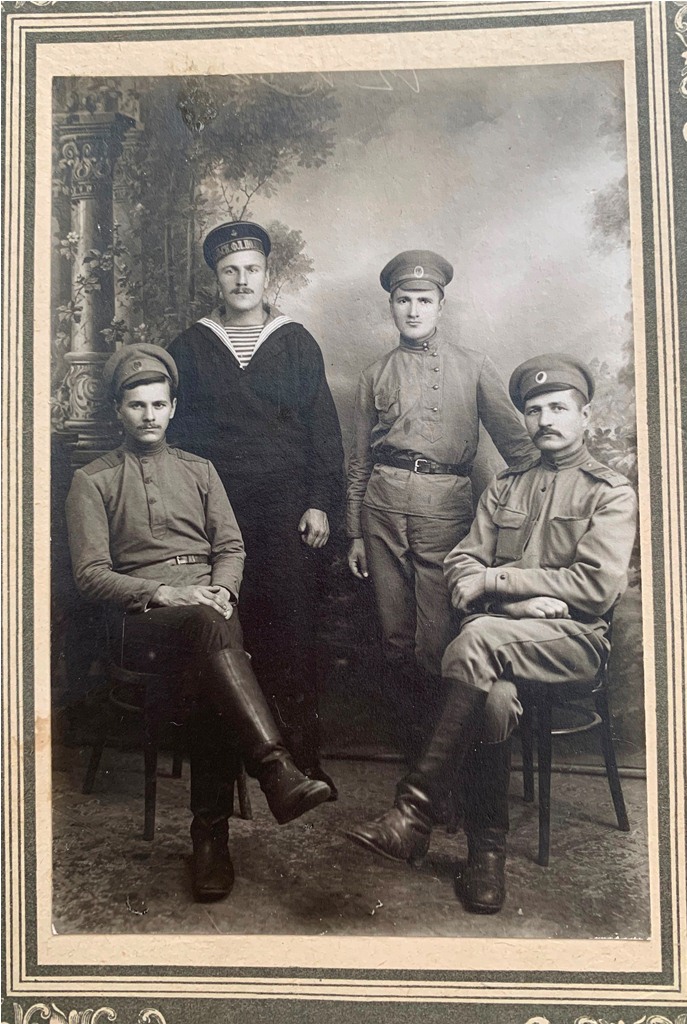 QUOTE(старнум @ Mar 31 2020, 15:56) Вместе с моряком из полуэкипажа нижние чины унтер-офицерского звания из 272-го пехотного Гдовского полка. Спасибо старнум, крайний справа это прадед моей жены. |