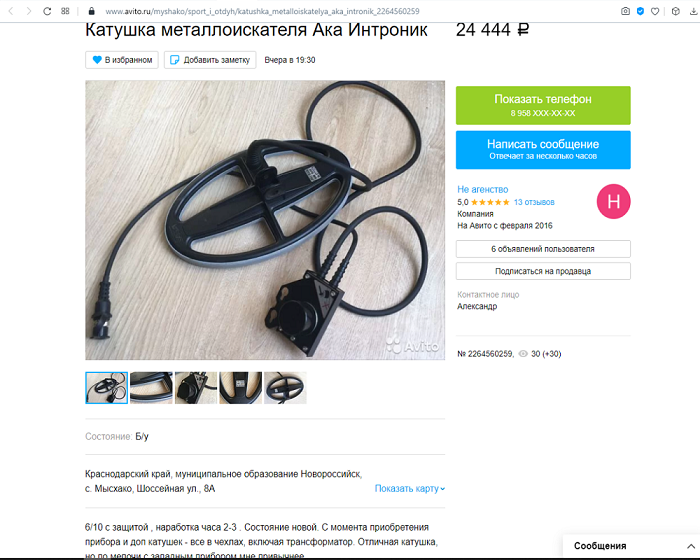 Я тоже у него брал катушки был мягко послан, в итоге продал их с демпингом. У меня одна прилипла вместе с трейд-ином, кстати. На Сигнум, кому надо это чудо, велкам в ЛС. 12 Диаметр вроде, частоту гляну и а днях. 2600. Дороже она не стоит. Сообщение отредактировано asgo: Nov 6 2021, 01:50 -------------------- Производитель магнитометра Гефест-4 8-917-5454135 asgo@rambler.ru http://www.asgoelectronics.ru/