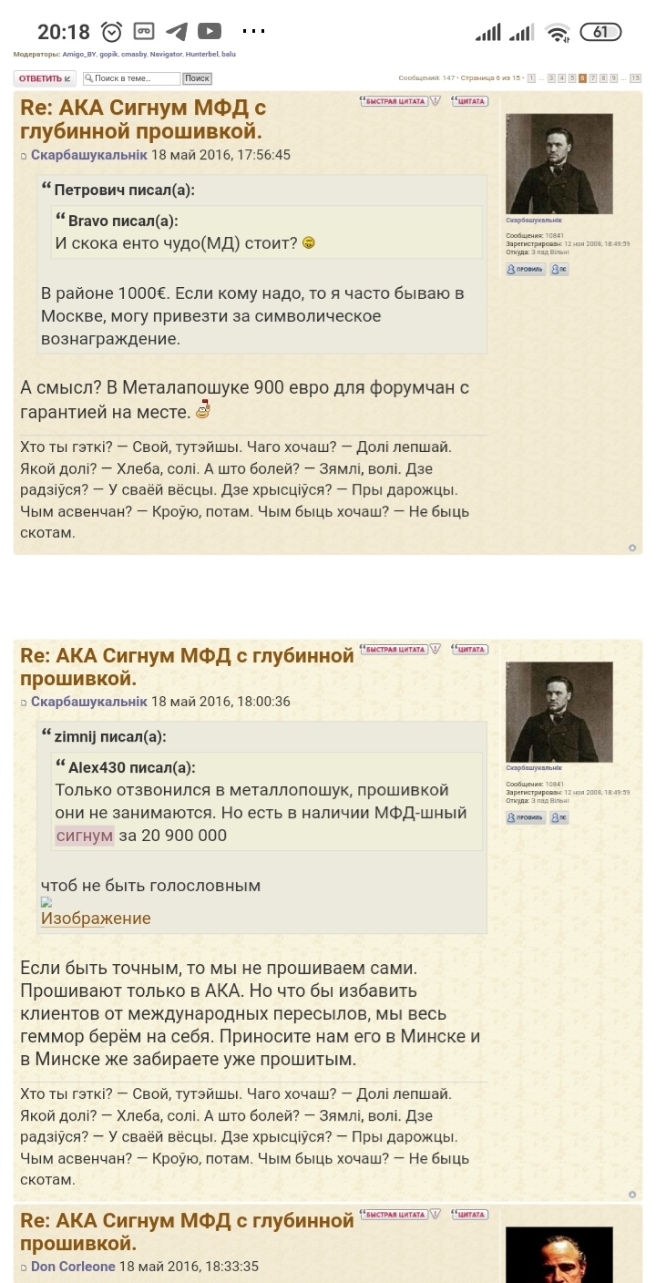 QUOTE(Anatolichh @ Feb 3 2021, 20:09) Мне помнится вы когда-то восхваляли глубинную программу на сигнуме МФД. И даже на белкладе, я из РБ и больше на белкладе сижу Восхвалял? Не выдумывайте. Давайте так, приведите конкретный пост и тогда поговорим. А так, тут столько любителей придумать то, чего не было. -------------------- А ты что,рассчитывал здесь увидеть живого епископа?!