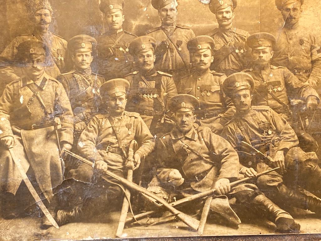 QUOTE(НиКкасл @ Jun 9 2020, 18:45) Действительно фото зачётное , казачки отчаянный , отважный народ. Практически все Георгиевские кавалеры и даже санитар. Двое , которые в шинелях подозреваю так же имеют награды , но по какой-то причине не сняли их.Может от скромности как-бы , а возможно времени на спешивание не было. Тематика имеет неплохой спрос по Георгиевским кавалерам , моё мнение от 5 т.р. Попробуйте выставить фото на SU-шке , там у вас будет больше шансов на информацию и соответственно продажу этого фото. С ув-м! Спасибо! Да это фото прекрасно показывает характер казачества Изображённые на нём чины сокрее всего относятся к Гундоровскому Георгиевскому полку а там героев действительно было много |