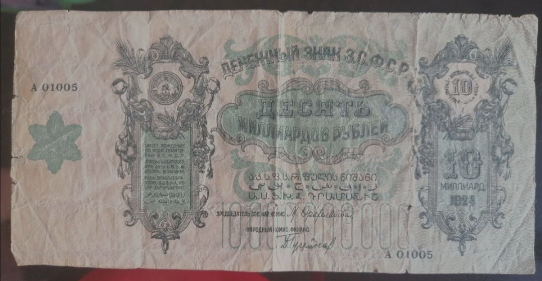 QUOTE(ома @ Jun 9 2020, 18:26) Вот редкий, самый крупный номинал закавказья 24 года. В достойном сохране, без обращения и рукоблудства, стоит много. Ветхая как у вас, ХЗ.. За 3000 как старт, можно, наверное, выставить. Я бы дал , хотя и не фанат этой грузятины , но пятак предложил бы, наверное, ради смеха. Больше .. может и дадут, конечно, но у кого есть деньги, ветхие знаки, как эта, не покупают в принципе. А кто всякий мусор гребёт, лишь бы дёшего , у них прайс один на всё. 300 рублей Хоть эту принесёте, хоть трактора, хоть лентяев. Как-то так |