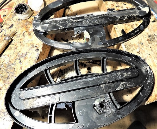 Приобрел катушку 5х10 COILTEK для Equinox. Под восстановление. Но не тут то было. На катушке отслоения заливики от корпуса, вода(при чем соленая) внутри. В результате этого экраны, которые есть внутри катушки, раздельные для каждой обмотки, соединились. Сопротивление между ними 100 кОм. Должно быть ноль. Может быть это дошло и непосредственно до обмотки ТХ. Прозвонить невозможно. Но между экранами должен быть ноль. По конструкции Коилтек намного посопливее, чем катушка минелаба. Если искать в воде, то у них есть срок, и он невечный. И дело не только в кабеле, но и в конструкции катушки. Плата в катушке один в один минелабовская, потому что Коилтек и Минелаб живут в одной стране и они друзья. Плату поставлю в V10 от Ваниша.