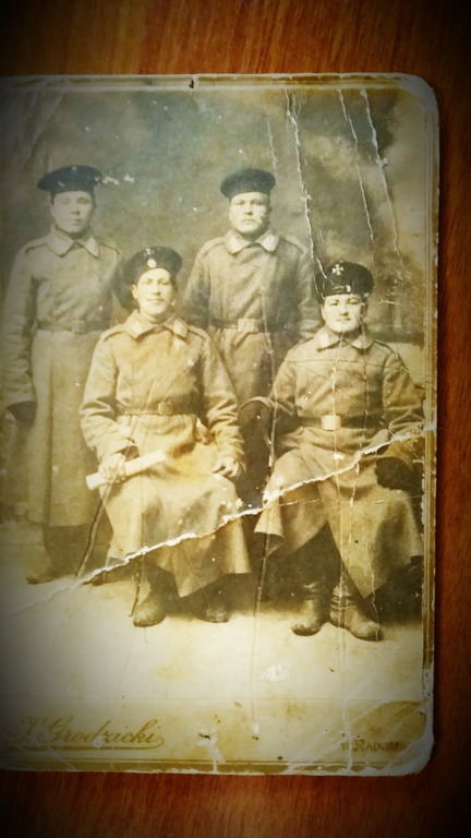 Фото первого периода войны 1914 г. Пехота. В Радоме стояла 2-я пехотная дивизия РИА. С началом войны первоочередные полки дивизии отправлены на фронт. На месте ушедших на фронт начали формировать запасные полки из запасных в т ч. и из ополчения (не призванных в мирное время и определенных в ополчение). Вот эти ребята новобранцы и есть на фотке.