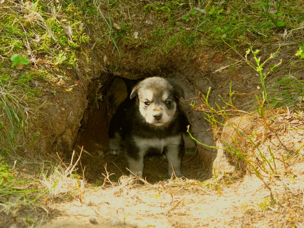 Гулял я сегодня по леску и набрёл на нору. Думаю, кто там живёт, как узнать? И стал им предлагать всякие городские вкусности, из норы, раздолось ворчание и вышли двое, потом один ушёл, а один остался, и взгляд у него был какой -то волчий.