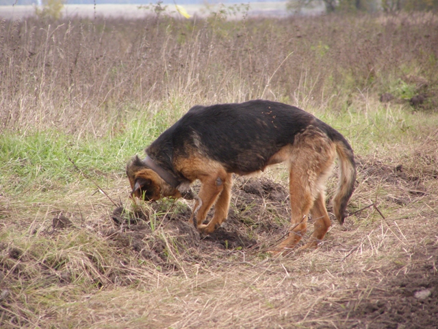 Пройдя буквально пару шагов от меня, она начинает усиленно копать в одном месте. Достаю фотик ее сфоткать, зараза - сели батарейки. Достаю другие, меняю. Она продолжает настойчиво рыть землю..копает копает..Ждет.. и снова копает. Вот так сказать - коллега за работой. И немного видео, Коп Затем мы уже шли вдвоем параллельно, друг другу не мешая. |