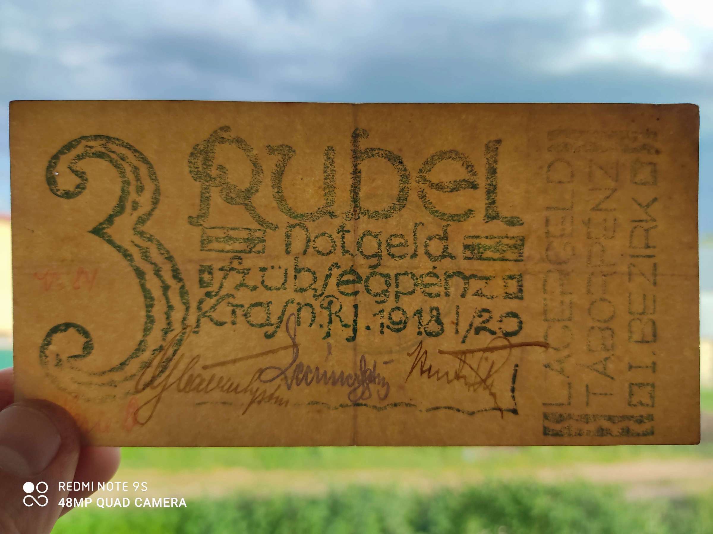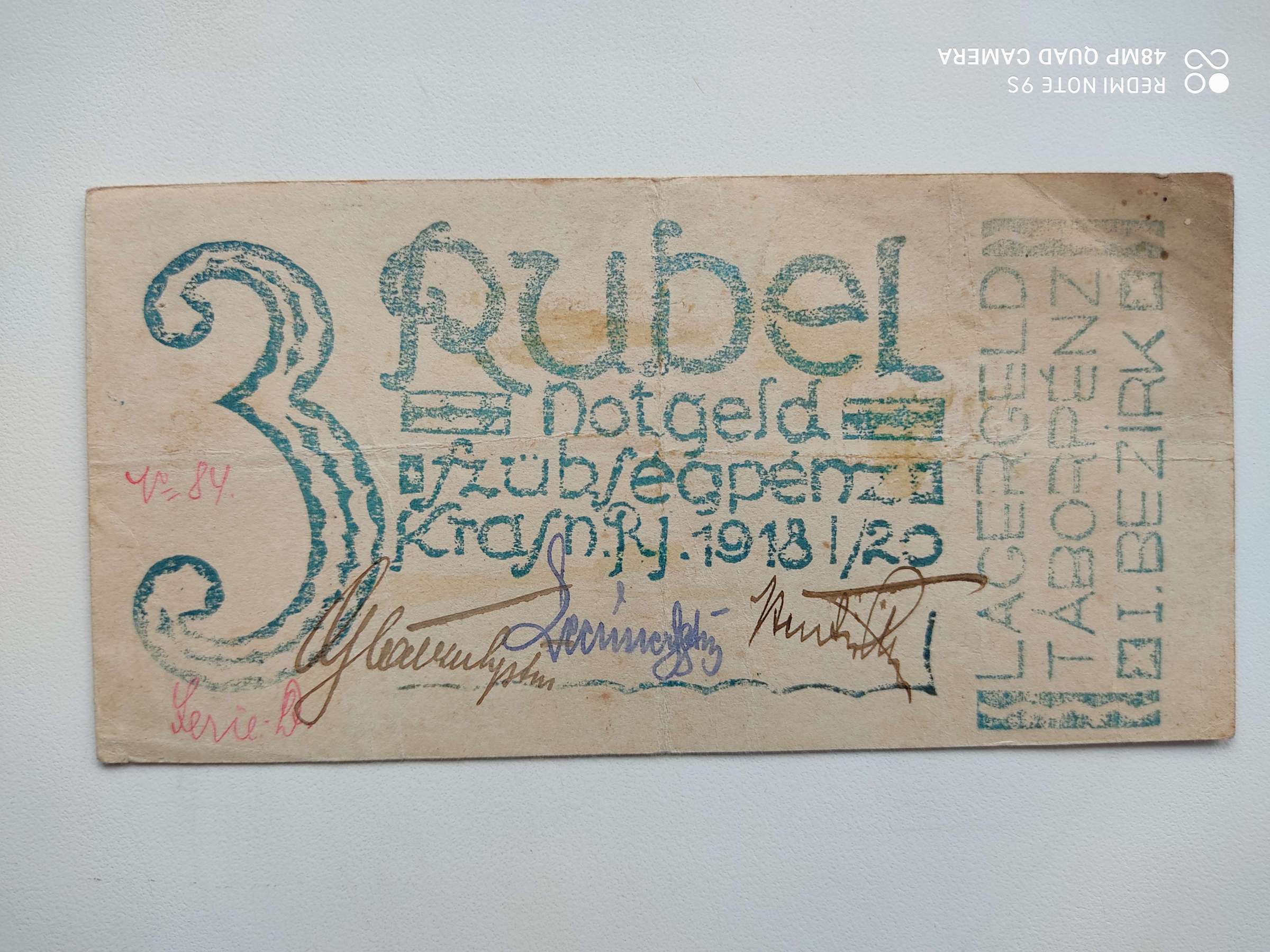 Представляю на опознание и оценку нотгельд, 3 рубля, 1918г. Вложенные эскизы изображений -------------------- С уважением, Виктор.