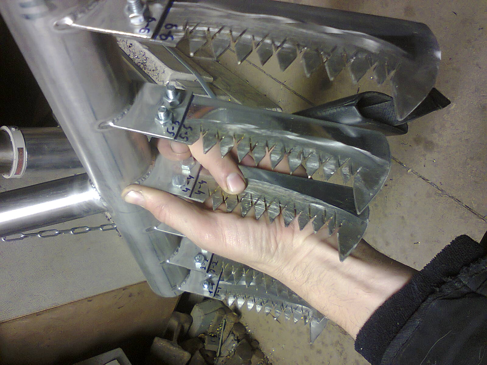 Не думаю,что ромбовидная форма лучший вариант...Трал должен работать по типу ,,кошачего когтя,,...А прорези в качестве ,,улавливателя,, могут сиграть злую шутку,просто порвать цепку в хлам,при малейшем зацеплении несколькими прорезями одновременно...Имхо...