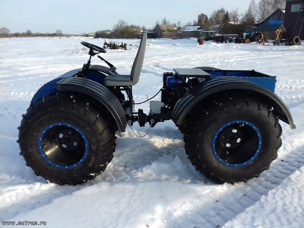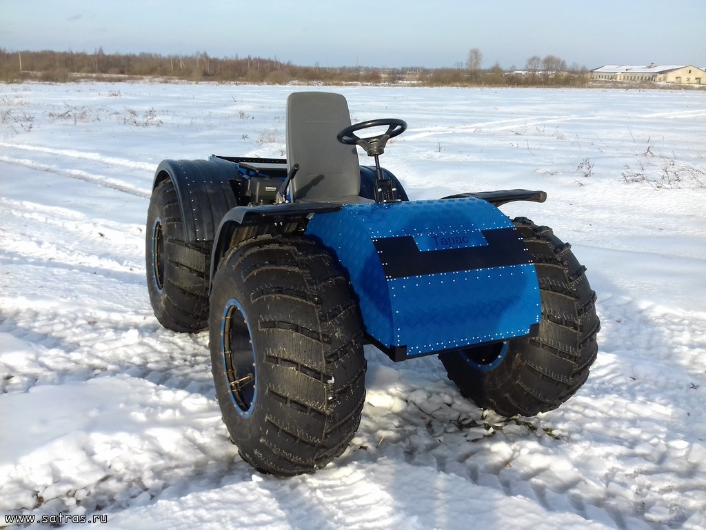 Движение в воде создаётся грунтозацепами протектора, их явно недостаточно чтобы плыть боле-менее сносно, слишком они срезаны. Можно поставить дополнительно винт к валу отбора мощности/лодочный мотор, но и тогда любая подтопленная коряга утопит Ваш, зацепившийся за топляк аппарат со всеми вытекающими последствиями (гидроудар и т.д.). Идея не рабочая. |