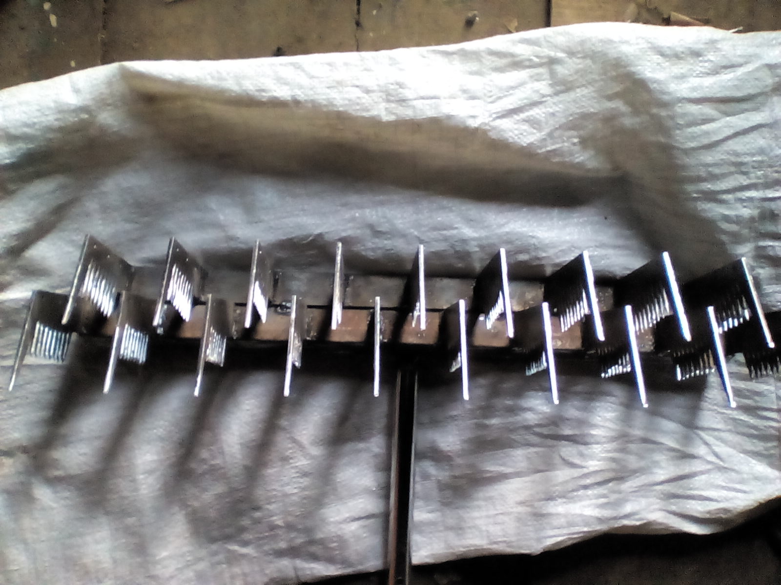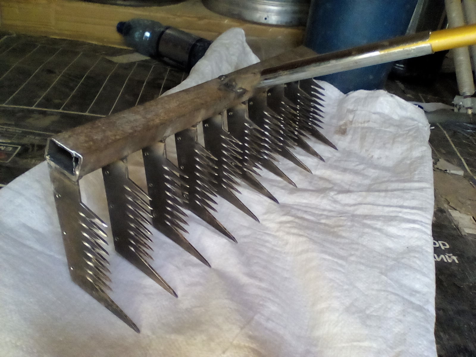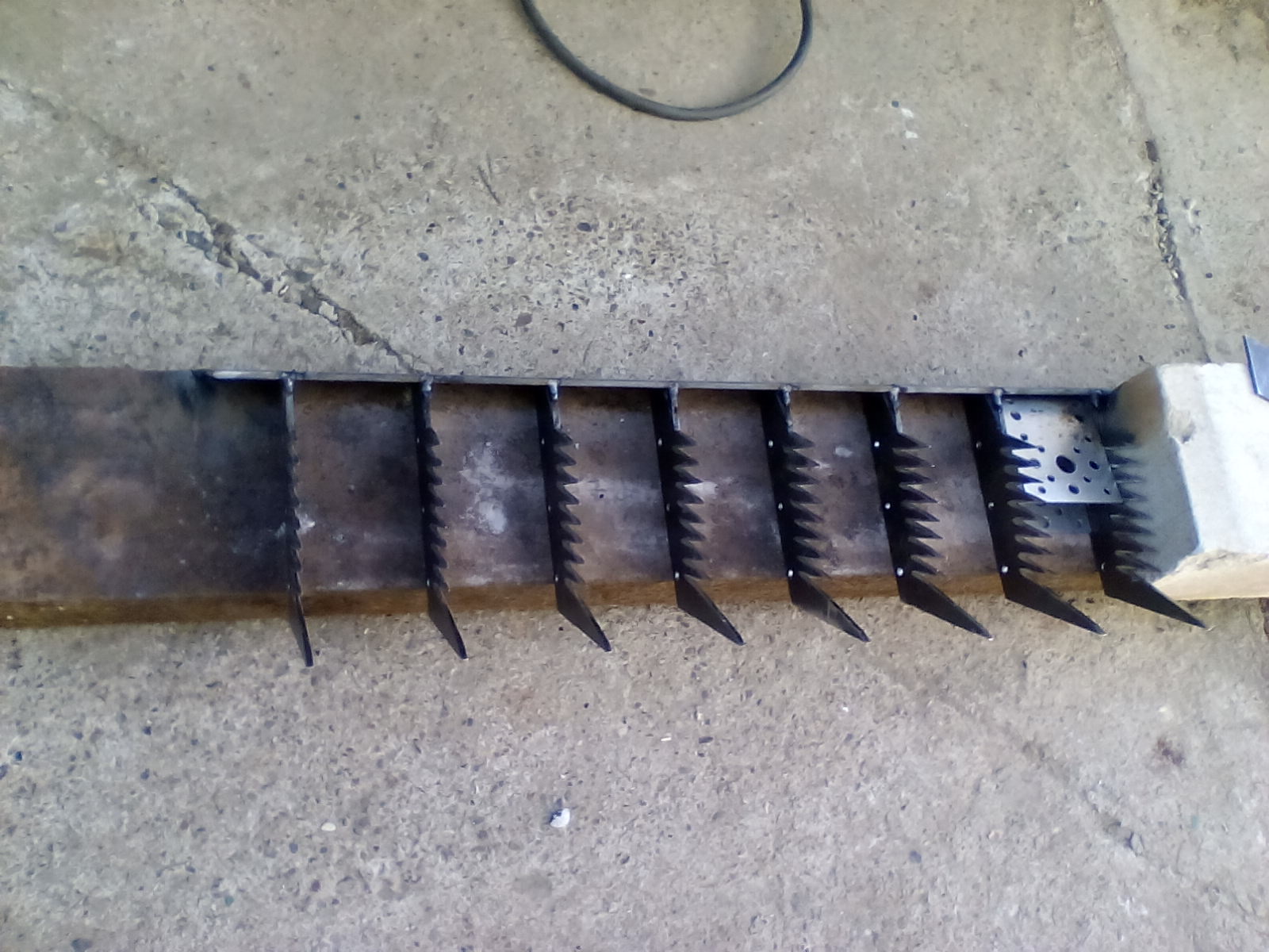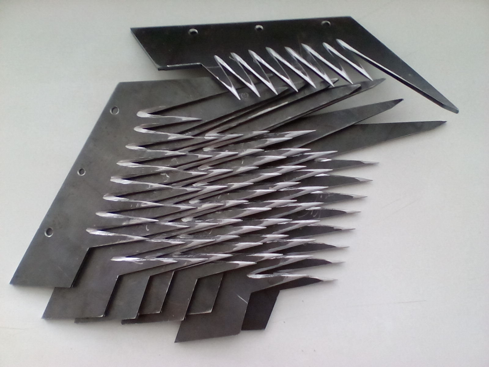 нет смысла в таком количестве штакетника, 8 шт! ,достаточно 4 зубьев,но правильных. Не забывайте о твердости металла,из сыромятины ненужно делать.По поводу кромок и заржавеют.... сложный вопрос, если в ухаживать ,то всё будет хорошо.Попробуйте в чёрном ,а экспериментальным путём поймете ,что там
