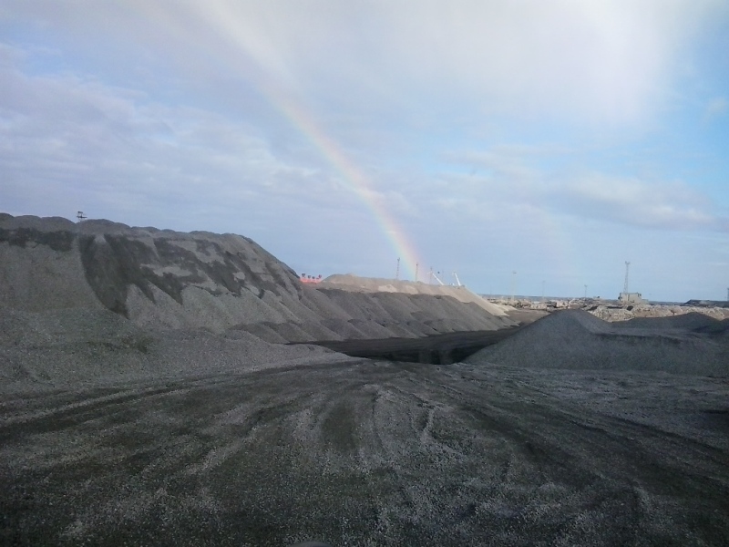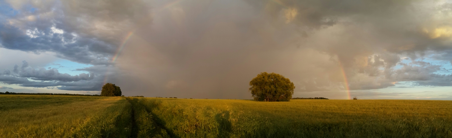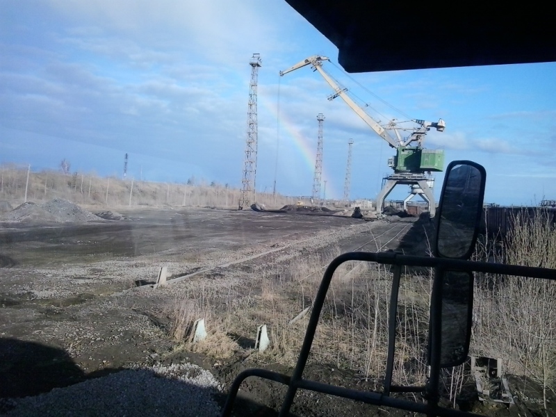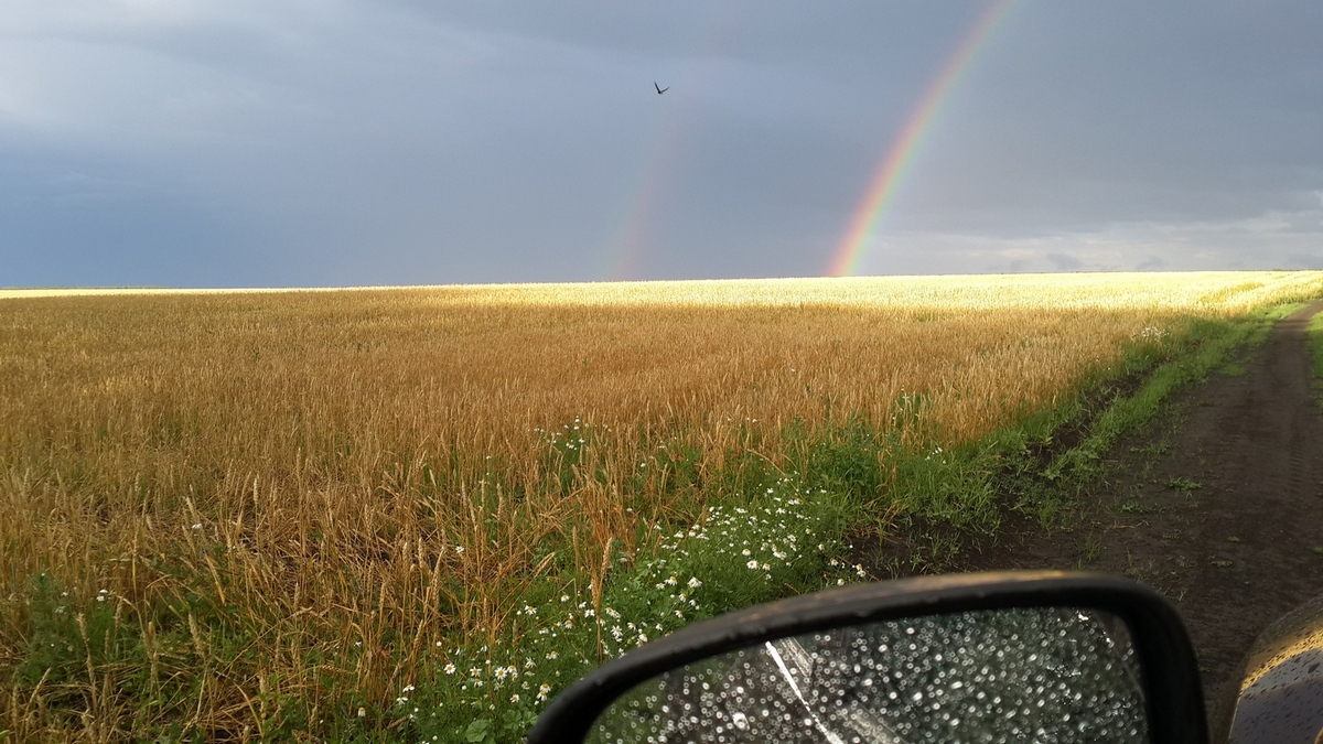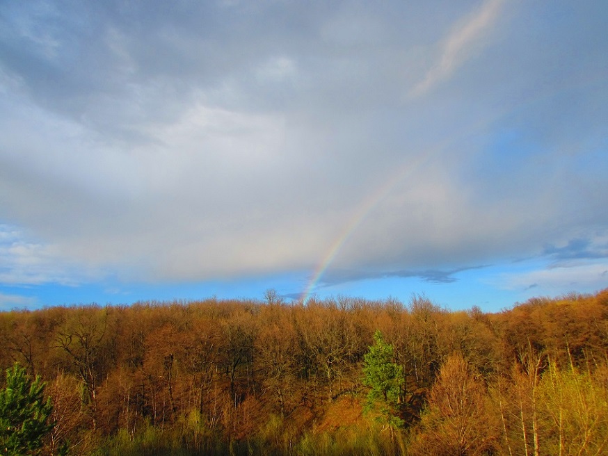 Дождь обещали, но так и не собрался, но странноватая радуга появилась. Походу вид с торца.