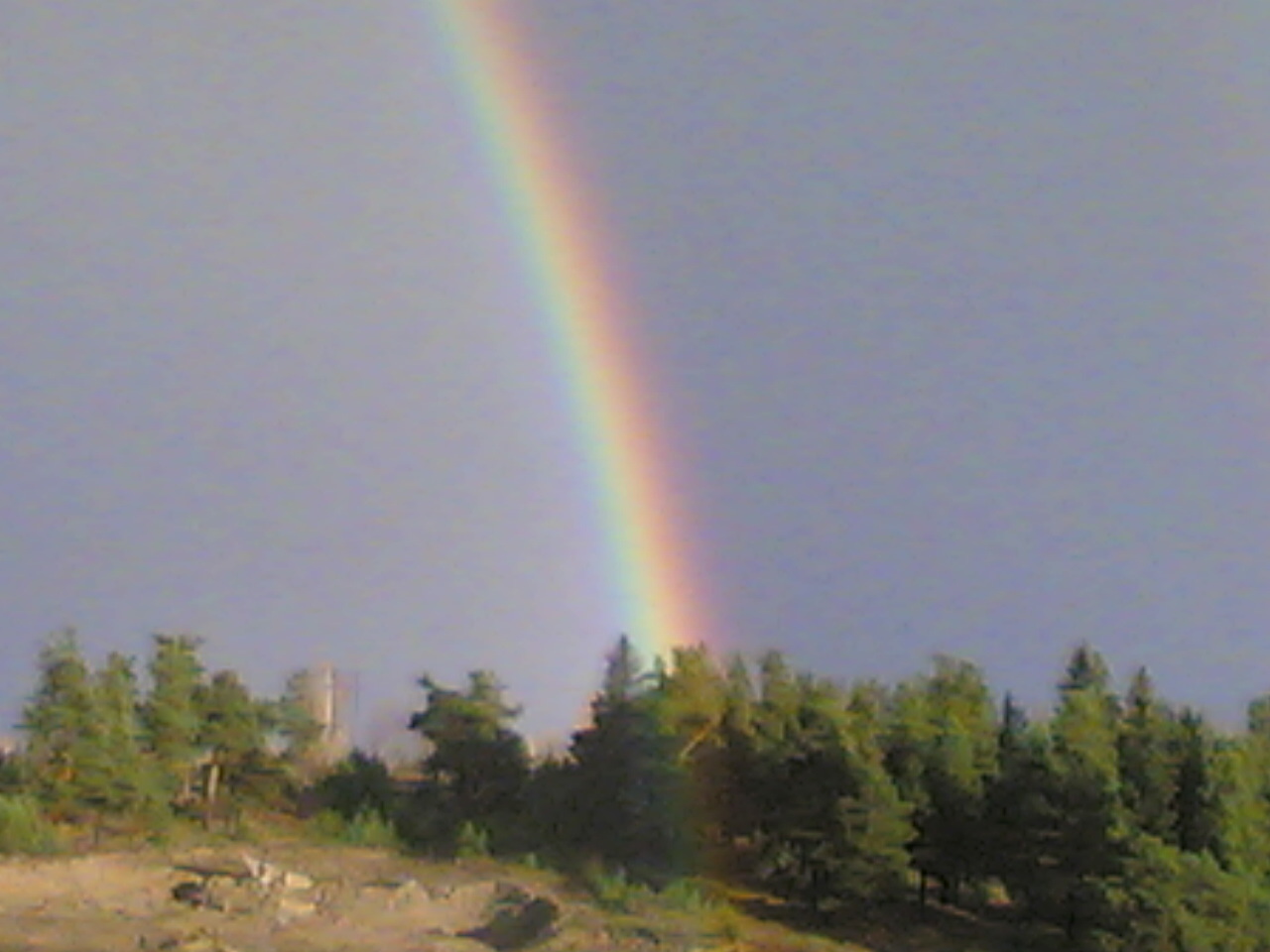 Отдыхали на Рузе. Несколько раз видели в небе кусочек Радуги, малюсенький такой. Заснять никак не удавалось. В небе. А вот в воде отражение ну хоть как-то на фото видно.