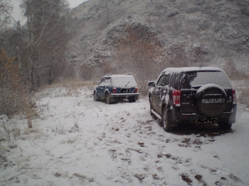 — Минус пятнадцать! — объявил товарищам Володя, глянув на дисплей электронного термометра в кабине своего «Сузуки». — Где-то наши егеря?.. — задумчиво промолвил Виктор, окидывая взглядом белые склоны гор вокруг. — Надеюсь, они добрались до жилья… Снег продолжал сыпать безостановочно. За ночь слой его «потолстел» сантиметров до двадцати, поэтому тянуть с отъездом было смерти подобно. Выражение это надо было понимать буквально — дорога в ущелье и перевалы скоро станут непроходимыми, а до ближайшей деревушки километров пятьдесят… Конечно, на недалёком зимовье ещё могли оставаться чабаны, но они скорее всего снялись ещё вчера — местные «нюхом чуют» природные катаклизмы и стараются без надобности не испытывать судьбу на прочность. К тому же, ехать по заснеженной колее уже и сейчас было опасно. Острые скальные выходы и обломки камней, которые машины спокойно объезжали по дороге сюда, теперь притаились под снегом и сулили немало сюрпризов на обратном пути. Собирались по полевому опыту быстро. Заминка вышла только с палаткой Геннадия и Лёни — прихваченный морозом сразу после дождя мокрый брезент стал колом, и её пришлось оттаивать у костра, чтобы сложить, не ломая. Сергеичев же предусмотрительно натянул полиэтиленовый полог над своей палаткой, и сейчас снял её с мужиками и скатал в мешок буквально за десять минут, воздержавшись от обычных подтруниваний над оплошностью своих постоянных компаньонов. Завтракали остатками вечерней трапезы также на скорую руку, перебрасываясь короткими фразами насчёт сорванных непогодой планов. Допив горячий чай, собрали кухонную утварь, сложили походные стульчики и стол, и на этом сборы были закончены. — А где же твои цирковые мышки? — спросил вдруг Виктор, и серьёзные с утра мужики сразу заулыбались, вспомнив вчерашнее представление. — Бери с собой, натаскаешь — будешь на пенсии выступать. — Дрыхнут, наверное, — откликнулся Лёня, повертел головой по сторонам, вытащил из мешка полбуханки и пристроил хлеб под ближайшим кустом. — Проснутся — найдут, помянут тогда нас добрым словом… Он спустился к реке, умылся ещё разок ледяной водой и мысленно попрощался до следующей осени: — Спасибо тебе, Река, и до свидания… — прошептал тихонько и вернулся к товарищам. Осмотрев напоследок место стоянки, рыбаки побросали в костёр обрывки газет, окурки и консервные банки, потом залили огонь ведром воды и ровно в десять расселись по машинам. Застоявшаяся прогретая техника резво выбралась из береговой долины и покатила по снежной целине предгорных распадков. Дорожная колея едва угадывалась на белом покрывале, солнце, отражаясь от острых граней снежинок, слепило глаза водителям, не давая разогнаться как следует на ровной, казалось, дороге. Схваченный первыми морозами ручей, пересекающий путь в двух местах, тоже был едва различим в снегу. Машины форсировали его осторожно, друг за другом, ломая хрупкий ледок задубевшими скатами, и въехали в заснеженное ущелье. Здесь толщина покрова достигала сантиметров тридцати, почти скрыв опасные дождевые промоины и ребристые щётки коренных пород. «Нива» шла первой, протаптывая дорогу для более широкой и низкой «Сузуки», и осторожность всё же уберегла путешественников от серьёзных неприятностей. В одном только месте пришлось стёсывать лопатой каменистый бугор, чтобы «япо