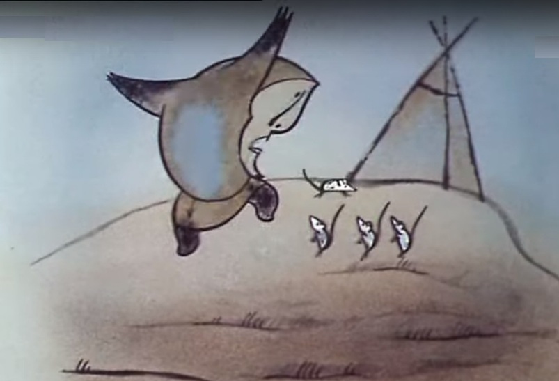 Кутх тогда уже мало летал. Больше пешком или на нартах с оленями ходил, человеком. А кухлянку ворона дома оставлял, в яранге. Мити, жена его, ленивая была. Ничего сама делать не хотела. Кутх придёт из тундры, мяса разного привезёт, рыбы, ягод, а она его юколой накормит и всё. Даже чай сварить не может. Спит целый день. И ночь тоже. В полярное лето никакой разницы нет, когда спать, всё равно светло. Надоело Кутху одну вяленую рыбу кушать. Однажды решил он проучить жену. Пришёл с охоты, разбудил Мити, отдал ей добычу и улёгся в яранге. — Не буду есть, — говорит. — Устал я. Совсем старый стал. Умру скоро. — Что ты, что ты! — испугалась Мити. — Не умирай, Куккэ! Без тебя как жить буду? — А как раньше жила — спать будешь. Совсем просыпаться перестанешь. Вот и догонишь меня у верхних людей. Сказал Кутх и закрыл глаза. Мити сидит рядом, плачет, сама не хочет умирать. Тогда Кутх говорит ей: — Иди, выкопай на сопке яму, неглубокую только. На дно мои нарты поставь и траву постели. Я лягу, кухлянкой укроюсь и умру. А ты потом навари толкуши, котлет наделай с кимчигой и сараной, чагу завари крепко. Приноси всё ко мне и сразу убегай, не оборачиваясь. Каждый день будешь так делать, тогда не уснёшь навсегда. — Хорошо, — сказала Мити. Обрадовалась, что умирать не надо. Побежала на сопку, всё сделала, как муж велел, и домой вернулась. Кутх покряхтел для виду, поднялся кое-как, кухлянку взял и ушёл на сопку. А Мити скорей варить начала. Наготовила еды всякой, отнесла мужу и бегом обратно. Кутх выбрался из-под кухлянки голодный сильно, уселся кушать скорей. Много съел, наелся уже, однако немножко котлет осталось, две с половиной штуки. Позвал тогда Кутх мышей: — Эй, внучатки, приходите в гости! Мыши услыхали его, запищали радостно. Бегут, хвостики свечкой — лапки потирают. Прибежали, наелись котлет, и давай у Кутха на животе скакать. Прыгают, кувыркаются, а ему щекотно до смеха. Хохотал он, хохотал, чуть не лопнул. Потом уснул крепко, укрывшись кухлянкой. И мыши с ним пригрелись, тоже спят. Так они жили долго, может, всё лето. Мити совсем сон забыла, — каждый день, поди-ка, сколько варить надо да ещё в тундру ходить за мясом и кореньями. А Кутх растолстел, что и в яме ему тесновато стало. Чуть мышей не придавил во сне. Все бока отлежал, да и ходить разучился. Надел он тогда свою кухлянку воронову и полетел домой. Прилетел, сел на кочку, кухлянку скинул. Позвал Мити. А она не узнала его, убежала к сыну Эмэмкуту. Тот выскочил из яранги, схватил хорей и давай Кутха по берегу реки гонять, дубасить. Хорошо ему бока намял. Кутх к вечеру, пока с сыном бегали, и похудел от такой встречи. Тут его все и узнали. — Как же ты ожил?! — обрадовалась Мити. А Эмэмкут ничего не сказал. Стоял только, рот открыв. И жена его рядом глазами лупает, как сова. — Верхние люди увидели, какая ты работящая стала, и отпустили меня, — ответил Кутх, почёсывая рёбра. — Только зря, видно. Но недолго он обижался, забыл скоро. Потому что Мити вкусно теперь варить научилась и совсем лениться перестала. Зажили они тогда снова — сыто да весело. Мыши только к ним поближе перебрались, в самую ярангу. Тоже привыкли вкусно кушать…» Рассказчик замолчал. А слушатели его, да и сам он, глядя в яркий огонь костра, долго ещё шли в мыслях по бесконечной тундре. В глаза им светило летнее солнце по кругу, над горизонтом, под ногами хрустел мох, жарко было лица