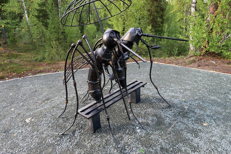 (вон те комары, что внизу, мне однажды рассказали) Как уже говорил, на работу я пешком хожу, – городок у нас маленький, и до электростанции, что питает электроэнергией и теплом обжитой пятачок Ямальской лесотундры, всего пол-часа ходу быстрым шагом. Сначала по почти пустым улицам – в шесть утра ещё не так много народу на работу топает. А в конце пути напрямки через лесок и болотце, по тропинке, чтобы поздороваться с просыпающейся живностью – белками, куропатками и зайцами, которые нет-нет да попадутся навстречу. Иногда, кстати, можно и лису увидеть, а вот насчёт медведей – то вряд ли, они всё-таки к человеку редко в гости заглядывают, если только оголодают сильно... Но, я кажется отвлёкся, извините. История на этот раз не про зверей, а про людей – про нас грешных, как бы некоторые ни старались себя в белые одежды нарядить, а иной раз такое отчебучат... хоть стой, хоть падай. Так вот, иду ярким летним утром по тротуару мимо городского парка и вижу вдруг на асфальтовой площадке, сразу за входом-въездом, пару машин полицейских и скорую. Рядом несколько человек в фуражках и при погонах и бригада врачей в белых халатах. А прямо у их ног на раскинутом брезенте, заляпанном тёмными пятнами, лежат двое молоденьких патрульных, судя по грязной форме защитного цвета. И лица у них, даже с расстояния видно, – серые, землистые, с закрытыми глазами, сведённые гримасами... Жуткие лица, короче. Хотел было подойти, спросить , что случилось, но по неприветливым взглядам начальства понял, – не надо подходить. Господи, думаю, кто же с ребятами сотворил такое... Прошёл мимо, тем более, на работу-то опаздывать нельзя. За делами производственными эпизод этот забылся быстро. Но у нас ведь, как в большой деревне, – у одного сват-брат в УВД служит, у другого жена-сестра в больнице, так что не прошло и суток, как история с двумя парнишками-"городовыми" была известна всем в мельчайших деталях. А дело было так: Оба-два они недавно срочную отслужили. А какая теперь служба в армии – так, название только. Уходили мальчишками, а вернулись пацанами. То есть дети они ещё совсем, не смотря на форму, что солдатскую, что патрульную. Вот эти ребятки и попали на дежурство в городской парк, в ночь с воскресенья на понедельник. Это, кстати, наш парк с высоты птичьего полёта (да-да, лес, что слева, и есть парк). Не знаю, как в других городах, но на севере, думаю, примерно одинаково безлюдно в такую ночь, тем более летом, когда пол-населения в отпуска разъехалось. Алкаш если только одиночный забредёт, переночевать на лавочке среди деревьев. А так – ни души. Вот и ходят наши герои по тротуарам и тропинками в парке. Ночь светлая, тихая, но так как лес всё же кругом, то мошка с комарьём их помаленьку грызёт. А от неё спасенье только костёр хороший или ветер, а ни того, ни другого нету, и ДЭТА не особо помогает. И тут проходят они мимо такого сооружения: "Сюрприз" называется. Что дальше было, вы уже, наверное, догадываетесь. Когда на этом аттракционе катаешься – точно никакая мошка не догонит, и вообще интересно. Особенно, если в детстве много крутиться родители не позволяли, а тут техника, можно сказать, в полном твоём распоряжении, до утра далеко, да и никто же не узнает... к бабке не ходи! Короче, не смогли ребятки мимо пройти. А уж ящик-то с рубильником и пускателями вскрыть (вон тот, коричневый), для грамотного современног