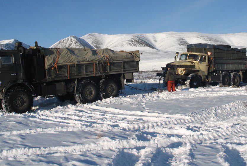 (шофёрская история №1) Конечно, у каждого водителя таких историй наберётся... вагон и маленькая тележка. Но их так интересно слушать, когда мотаешься по ямальским месторождениям, наблюдая сквозь лобовое стекло, как сотни километров дорог утекают под колёса машины... *** - Первые несколько лет работал я у газовиков на строительстве компрессорной станции, возил на бортовом «Урале» все, что ни прикажут, днем и ночью. Считай, жил за баранкой месяцами, хотя и было у меня уже свое жилье – балок-бочка на санях. Вот однажды отправляют меня, в паре с другой машиной и с двумя грузчиками, за полторы сотни километров в сторону Ханымея в брошенный поселок трубопроводчиков. Там кто-то случайно обнаружил целый склад рулонов самоклеющейся японской ленты, применяющейся для изоляции газопроводов, а у нас на стройке как раз с этой лентой была напряженка. Ехать нужно было по зимнику вдоль железнодорожного полотна, а дело было в середине мая – снег хоть и не сошел еще, но рисковать машинами на подтаявшей дороге ни к чему – дали нам в сопровождение геологоразведочный ГТТ для страховки. - Прогуляетесь пару деньков на свежем воздухе, отдохнете заодно за выходные! – пошутил перед нашим отъездом "добрый" начальник гаража. - Чем тут, в поселке дурака валять, лучше на природе. Водитель на втором «Урале», пожилой степенный дядька, все делал обстоятельно, с расстановкой, да и машина у него была ухоженная и блестящая, что твой новенький юбилейный рубль. Инструменты всегда с собой имел в полном комплекте, и домкрат, и запаску, и трос буксировочный, в общем – настоящий хозяин. А перед той поездкой он свою кормилицу еще и помыл хорошенько. - Что ты, дядя Коля, к свадьбе машину готовишь? – спросил один из грузчиков, - в лес ведь едем. - Да хоть и в лес, а на чистой технике все лучше, чем на таком вот драндулете, - он кивнул в сторону подъехавшего ГТТ, по самую крышу заляпанного комьями грязи. Из вездехода вылез громадный, другого слова и не подберешь, верзила под два метра ростом в замасленном комбинезоне, подошел к нам, поздороваться. Все в нем было огромное: ноги в кирзачах сорок последнего размера, руки-кувалды, плечи – косая сажень, голова в танкистском шлеме, наушники которого торчали в стороны параллельно земле, так как не могли упрятать под собой оттопыренные уши-локаторы, нос - бугристой картофелиной, подбородок, что твой валенок. Подивились мы на такое чудо, не подавая вида, конечно, познакомились, разошлись по машинам, и в путь. Я ехал первым, так как знал дорогу, дядя Коля за мной, а ГТТ последним. Добрались до места во второй половине дня без особых приключений, только примерно на середине пути, на повороте в сторону от железной дороги, нам пришлось воспользоваться помощью вездехода, чтобы перебраться через огромную лужу жидкой коричневой грязи. В этом месте зимник уходил вглубь болотистой лесотундры и пересекал рукотворную низину, где хрупкий слой северной почвы был поврежден еще со времен строительства железнодорожного полотна. С вечера загрузили машины рулонами пленки, перекусили уже в темноте и заночевали в кабинах. От водителя ГТТ наутро несло перегаром, словно из винного погреба. Он, видать, крепко принял на грудь перед сном, закрывшись в своем железном ящике. Дядя Коля, учуяв за завтраком тошнотворный запах, который исторгала могучая грудь нашего попутчика, покача