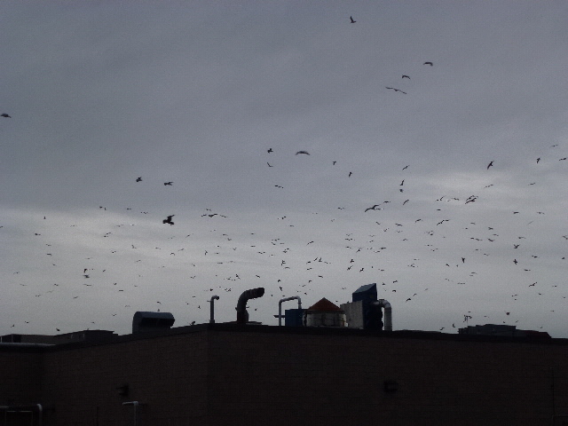 Это не вороны это чайки На океане третий день шторм а жрать хочеться каждый день Вот они и шароёбяться у магазинов и по всяким помойкам!