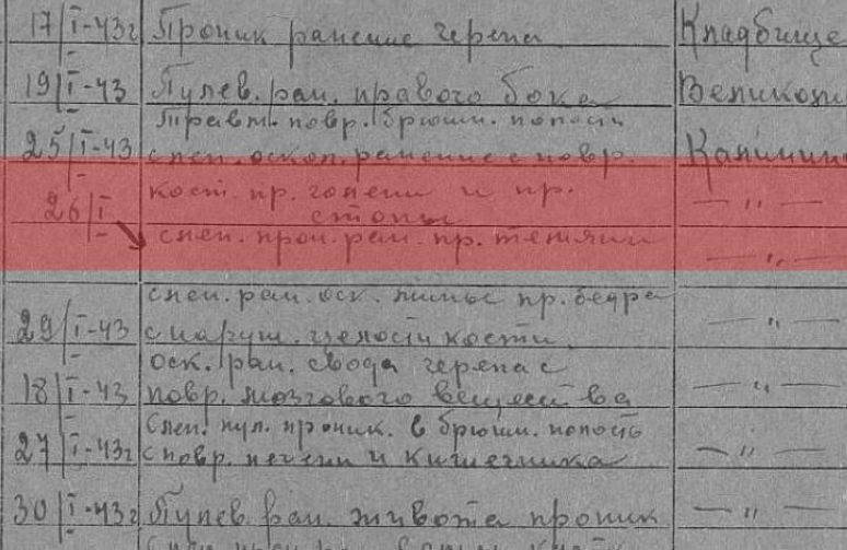 QUOTE(МИРовой @ Apr 17 2008, 16:00) Все кто хотелбы найти своих пропавших дедов и прадедов воевавших в регулярной армии РККА можно попробывать здесь,если ненашли,делайте запрос! Желательно знать Ф.И.О./откуда родом или призван каким РВК. Быстрее найдут,я ждал почти год! http://www.obd-memorial.ru/ или тут http://ipc.antat.ru/Ref/all.asp Спасибо за ссылку! Вот уж не ожидал что смогу увидеть документ и узнать от чего умер мой двоюродный дед, в свое время занимался и поиском его захоронения и различными запросами...хранятся все его письма... В 41-м с места службы на дальнем востоке сразу на запад, учебка, год на фронте в минометном батальоне, ранение, орден красной звезды... второе ранение уже не пережил...."слепое проникающее ранение правого темяни"...26 лет парню было... Вложенные эскизы изображений -------------------- Ища копейку,..