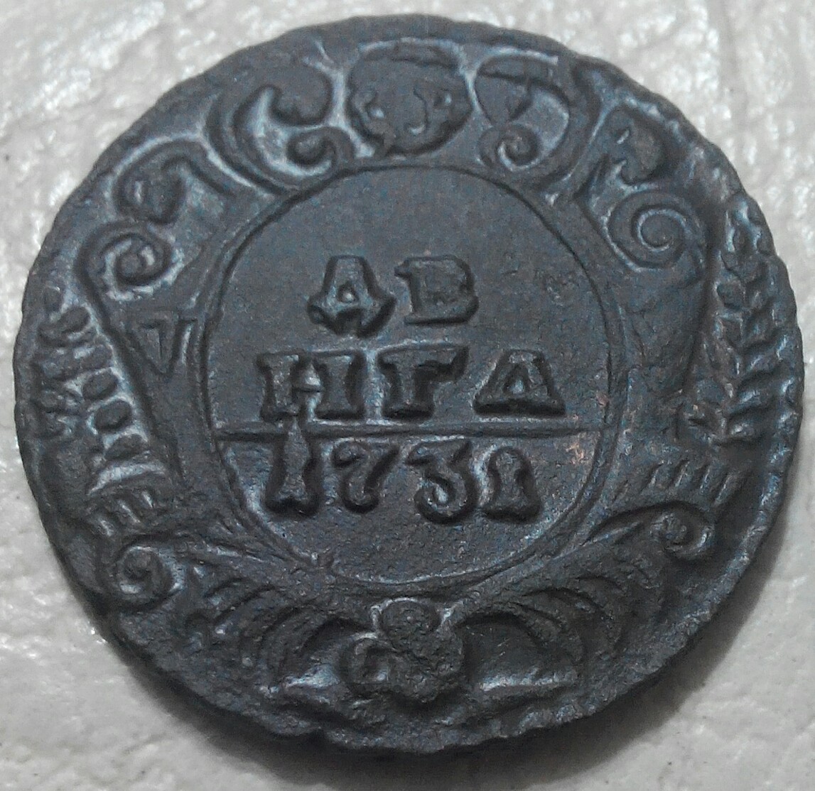 Помогите определить и оценить Деньгу 1731 года с необычным орлом.